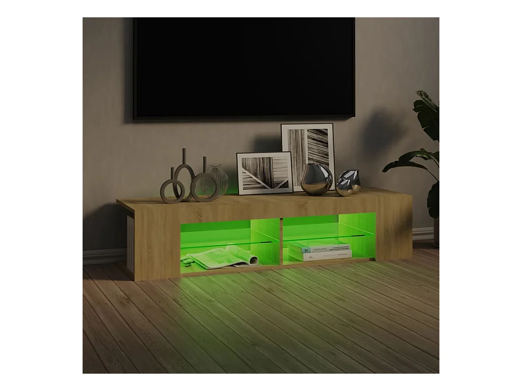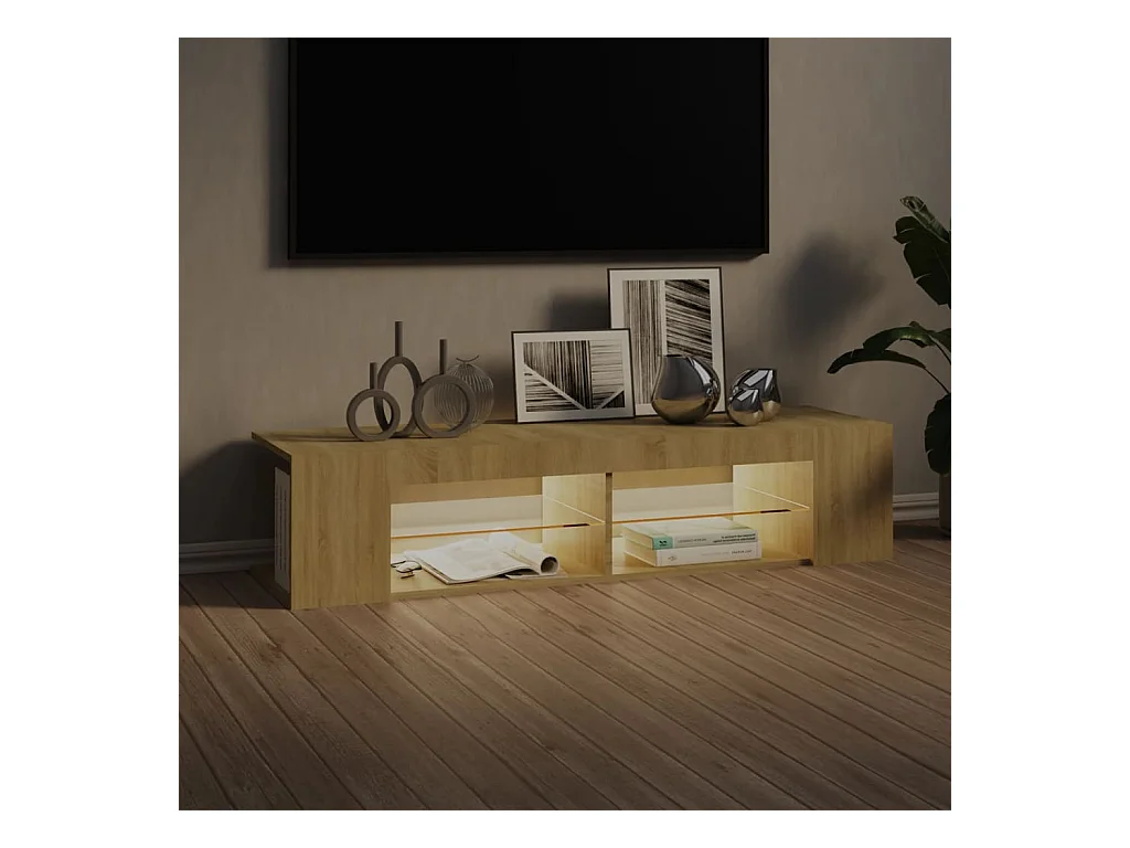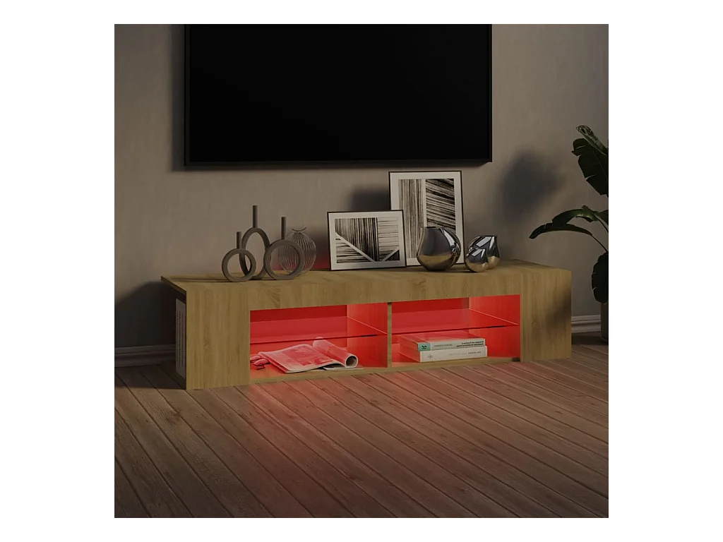 Mueble de TV | Mueble de salón luces LED madera roble artisan 135x39x30 cm