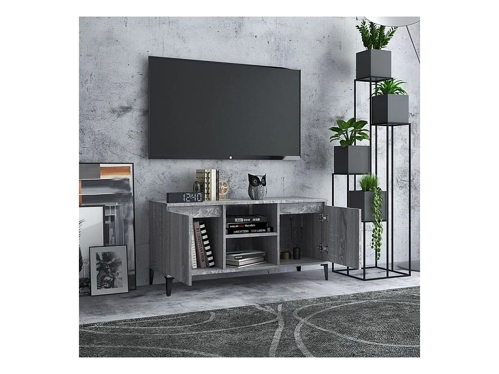 Mueble de TV | Mueble de salón con patas de metal gris Sonoma 103,5x35x50 cm