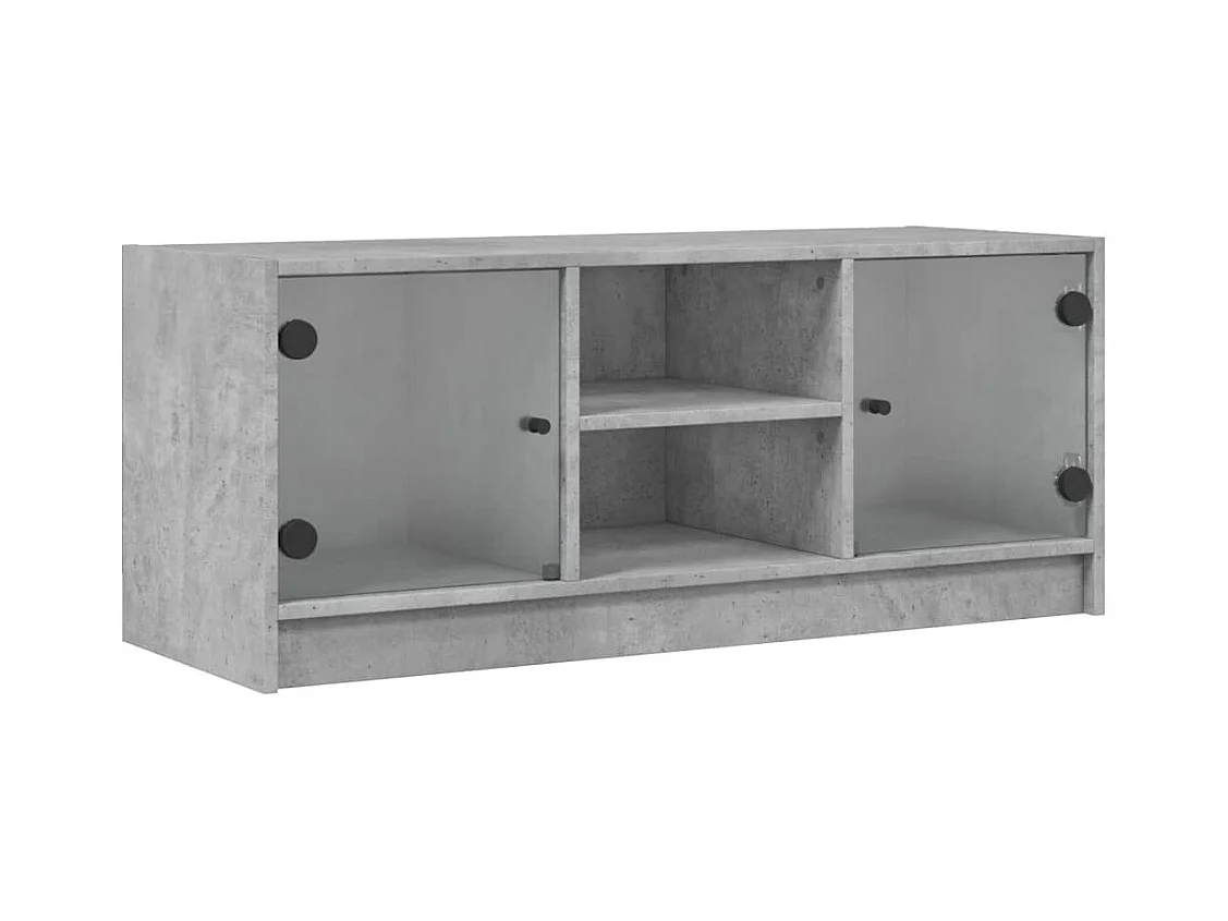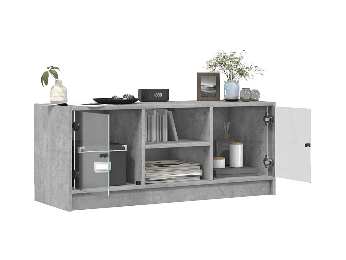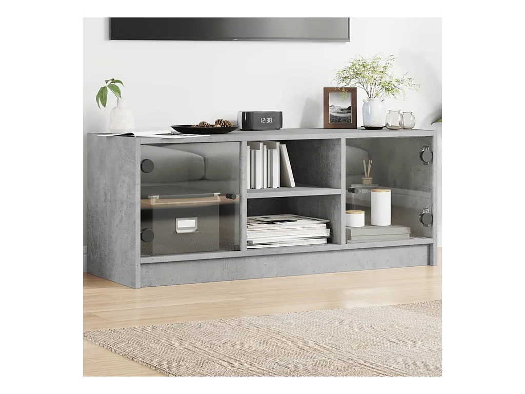 Mueble de TV | Mueble de salón con puertas de vidrio gris hormigón 102x37x42 cm