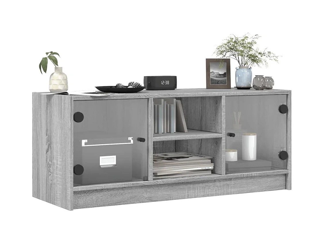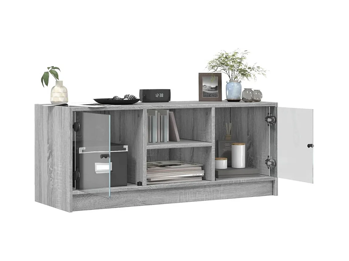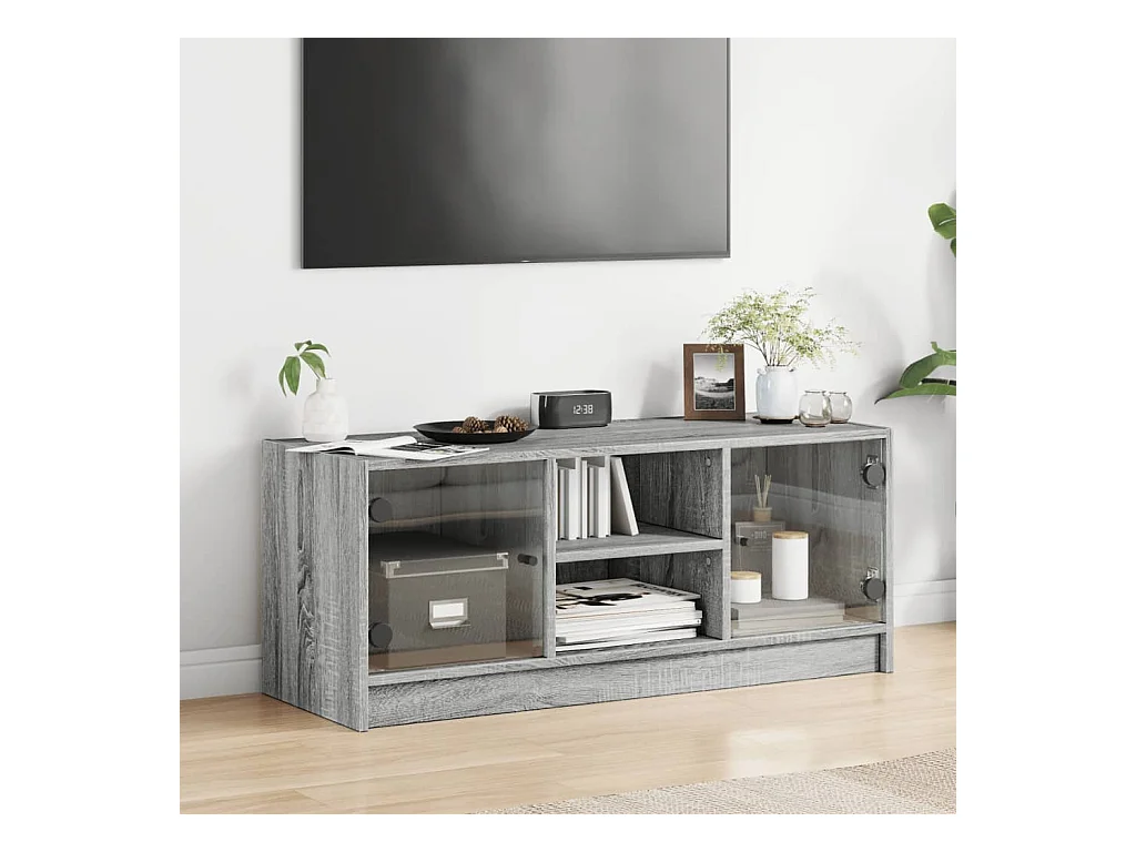 Mueble de TV | Mueble de salón con puertas de vidrio gris Sonoma 102x37x42 cm