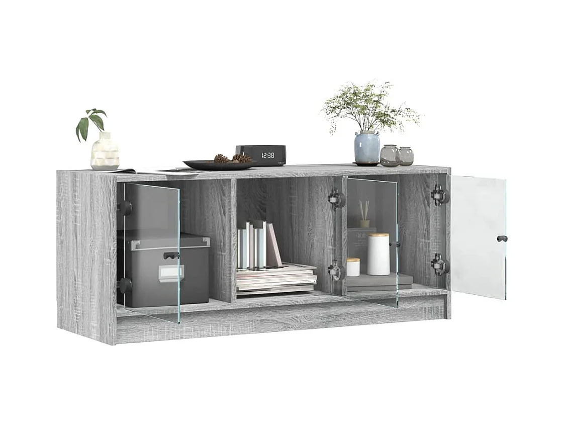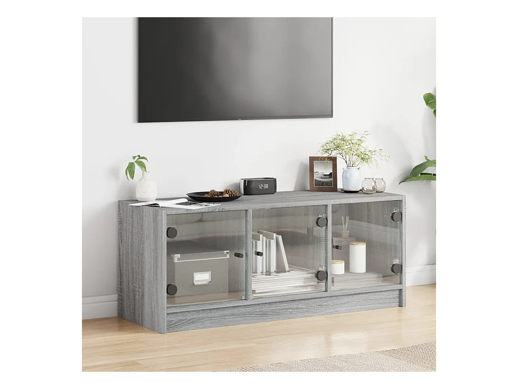 Mueble de TV | Mueble de salón con puertas de vidrio gris Sonoma 102x37x42 cm