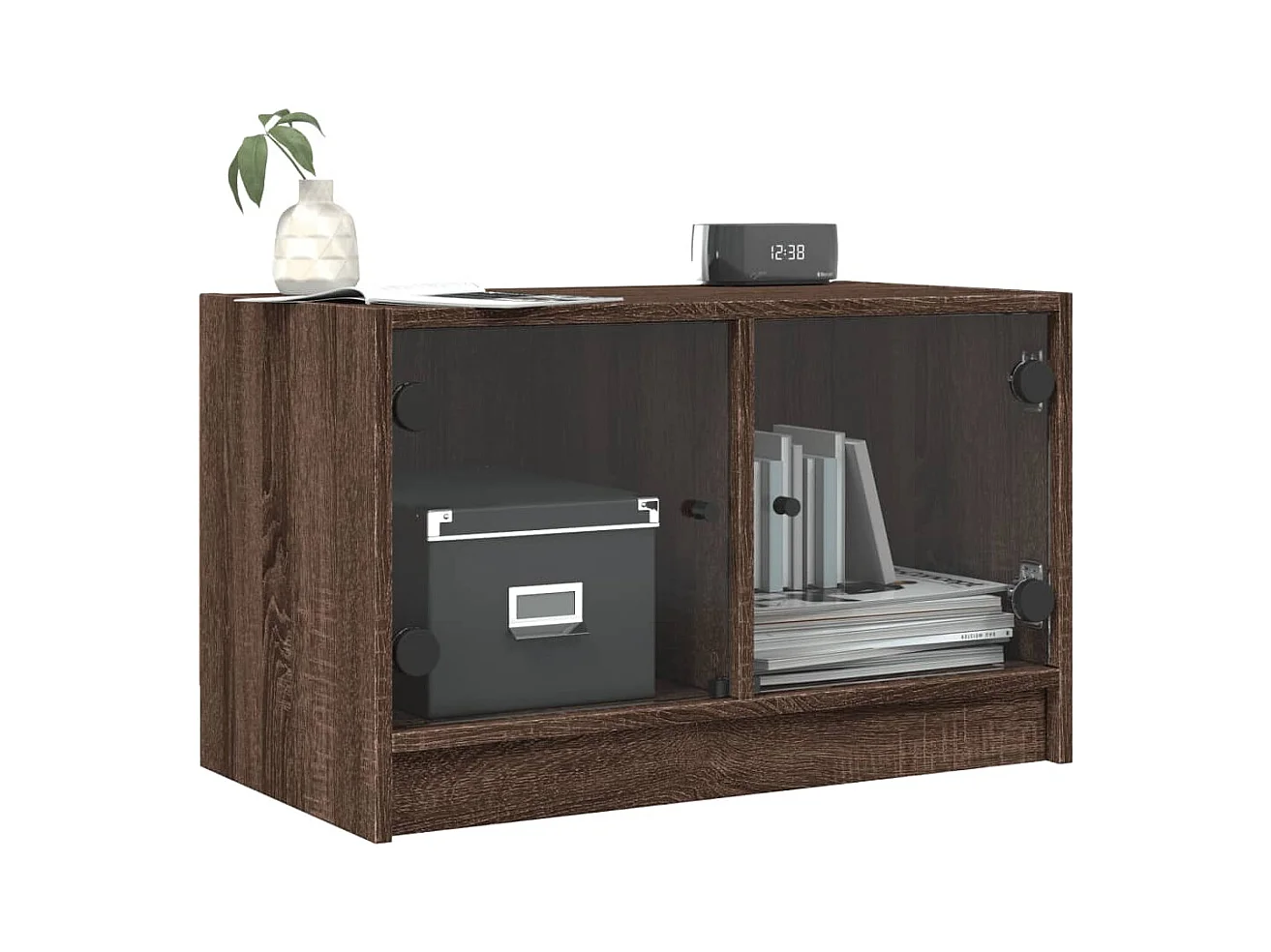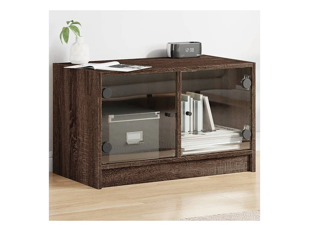 Mueble de TV | Mueble de salón con puertas de vidrio marrón roble 68x37x42 cm