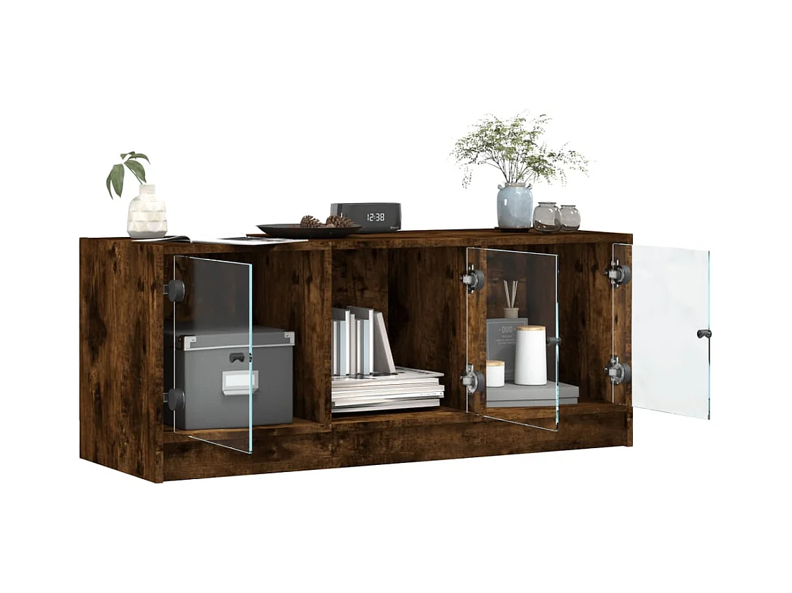 Mueble de TV | Mueble de salón con puertas de vidrio marrón roble 102x37x42 cm