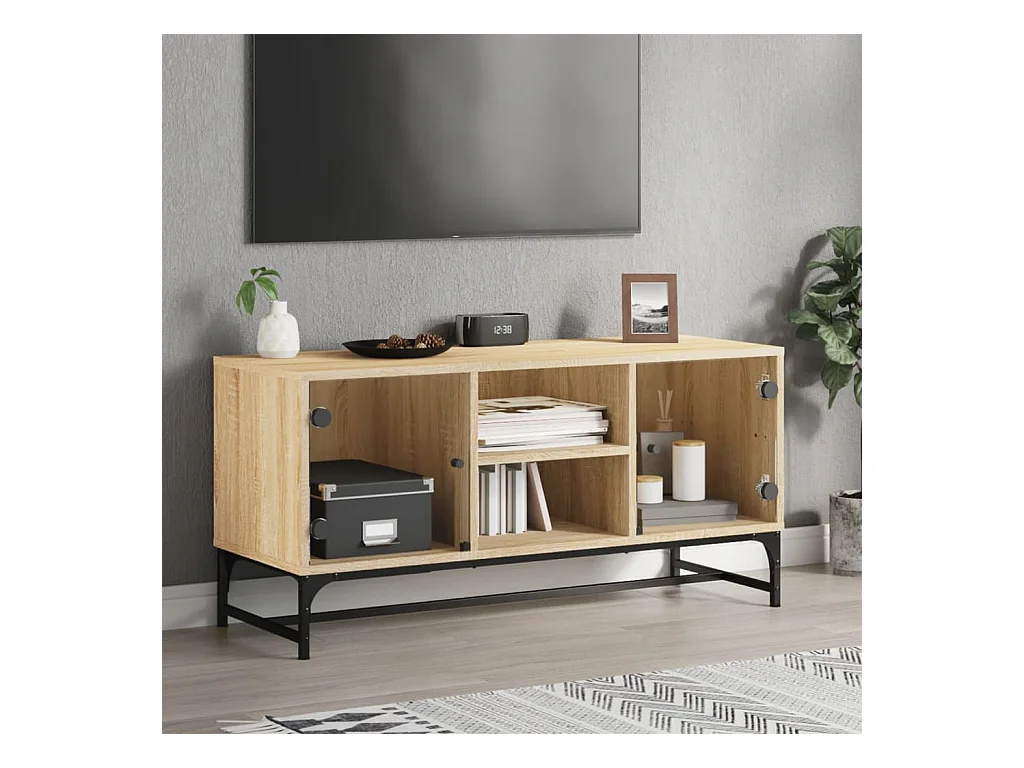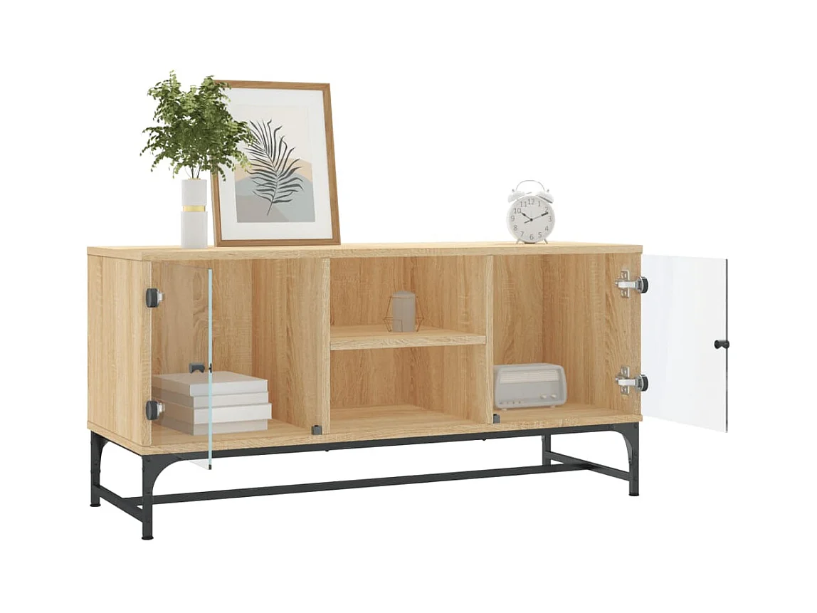 Mueble de TV | Mueble de salón con puertas de vidrio roble Sonoma 102x37x50 cm