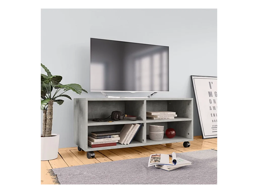 Mueble de TV | Mueble de salón con ruedas contrachapada gris hormigón 90x35x35 cm