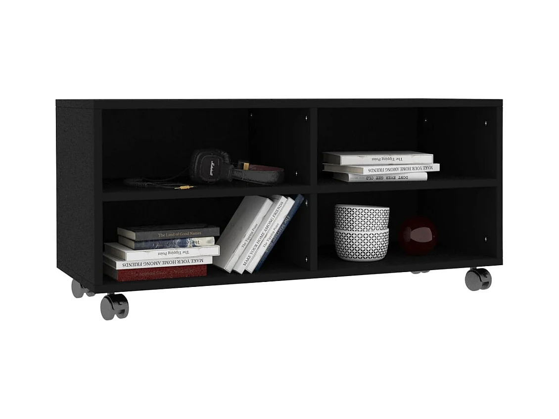 Mueble de TV | Mueble de salón con ruedas madera contrachapada negro 90x35x35 cm
