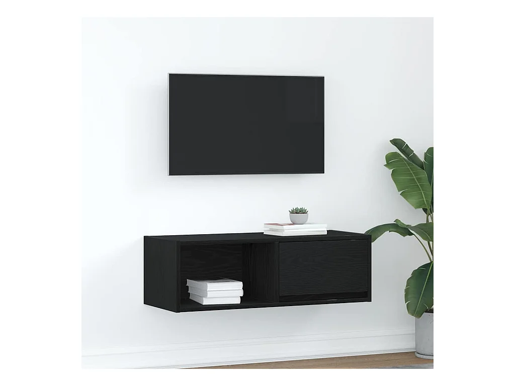 Gabinete de TV | Mueble de TV | Mueble de salón con cajón Roble negro 100 x 31 x 25.5 cm