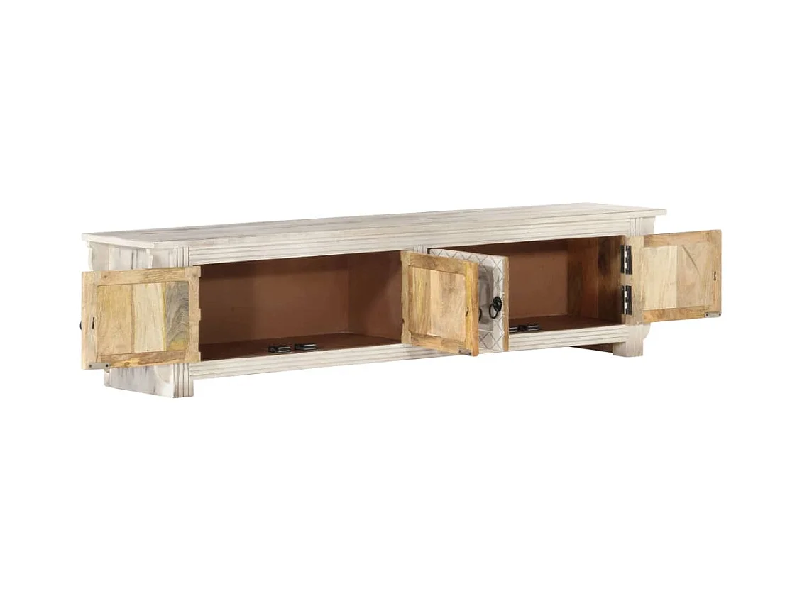 Mueble de TV | Mueble de salón de madera maciza de mango blanco 140x30x35 cm