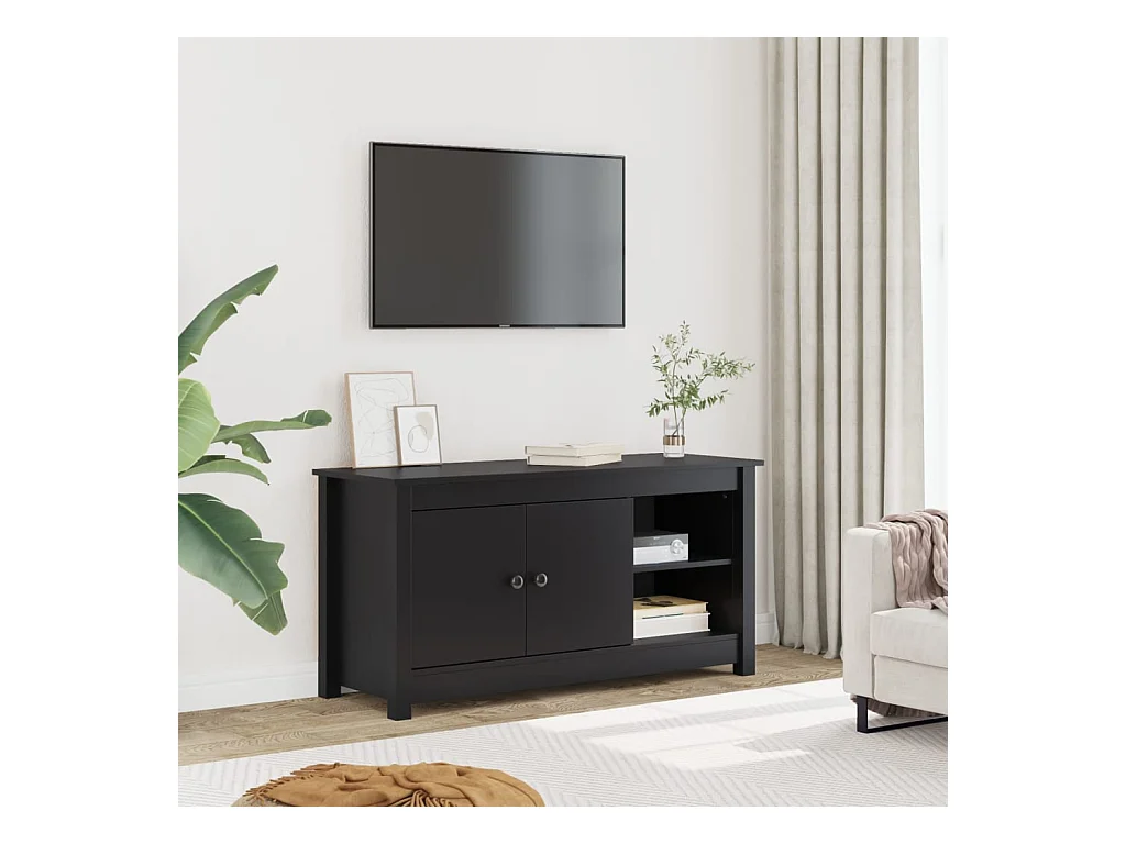 Mueble de TV | Mueble de salón de madera maciza de pino negro 114x35x52 cm
