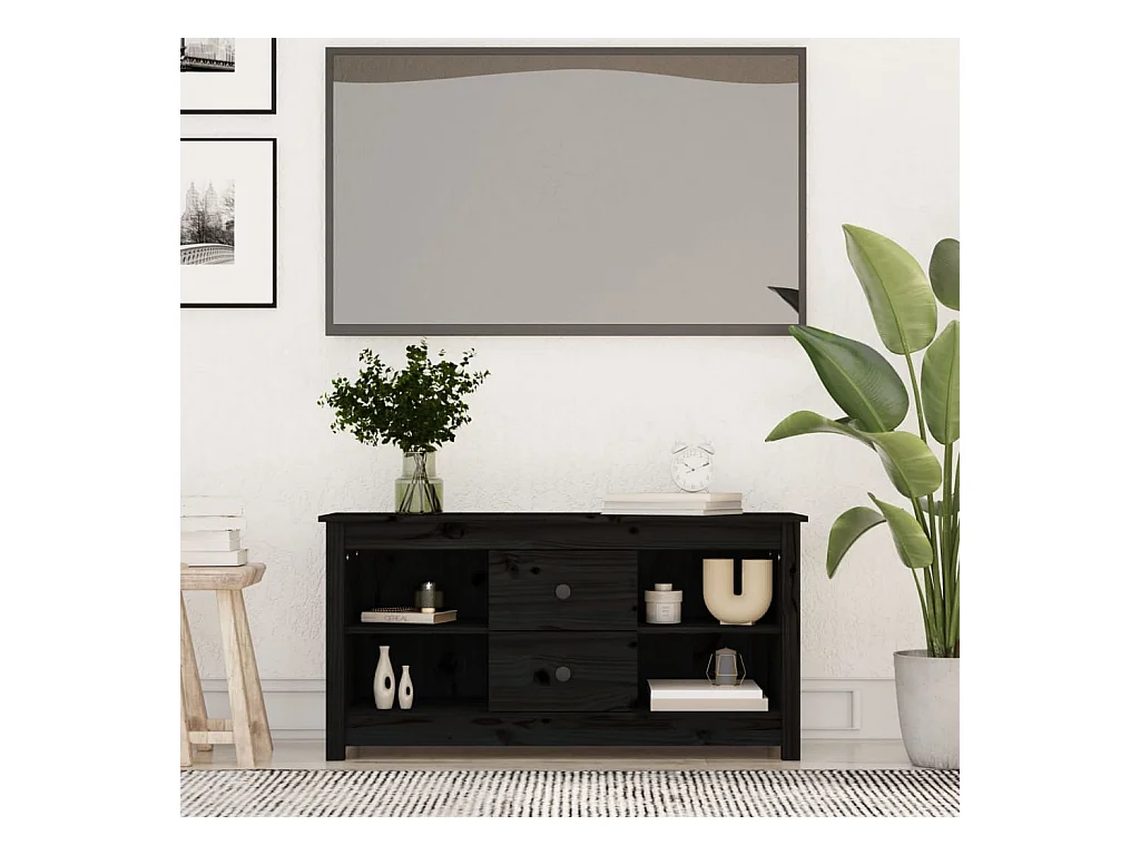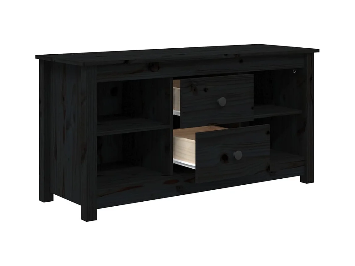 Mueble de TV | Mueble de salón de madera maciza de pino negro 100x34x40 cm