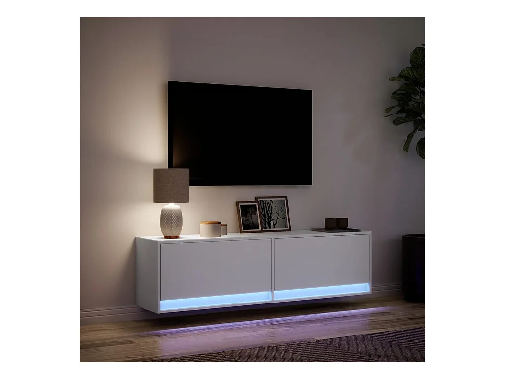 Mueble de TV | Mueble de salón de pared con luces LED blanco 140x31x38 cm