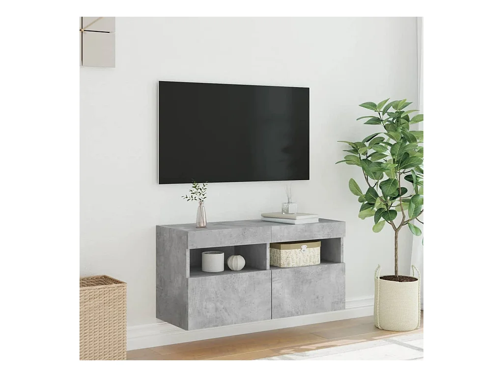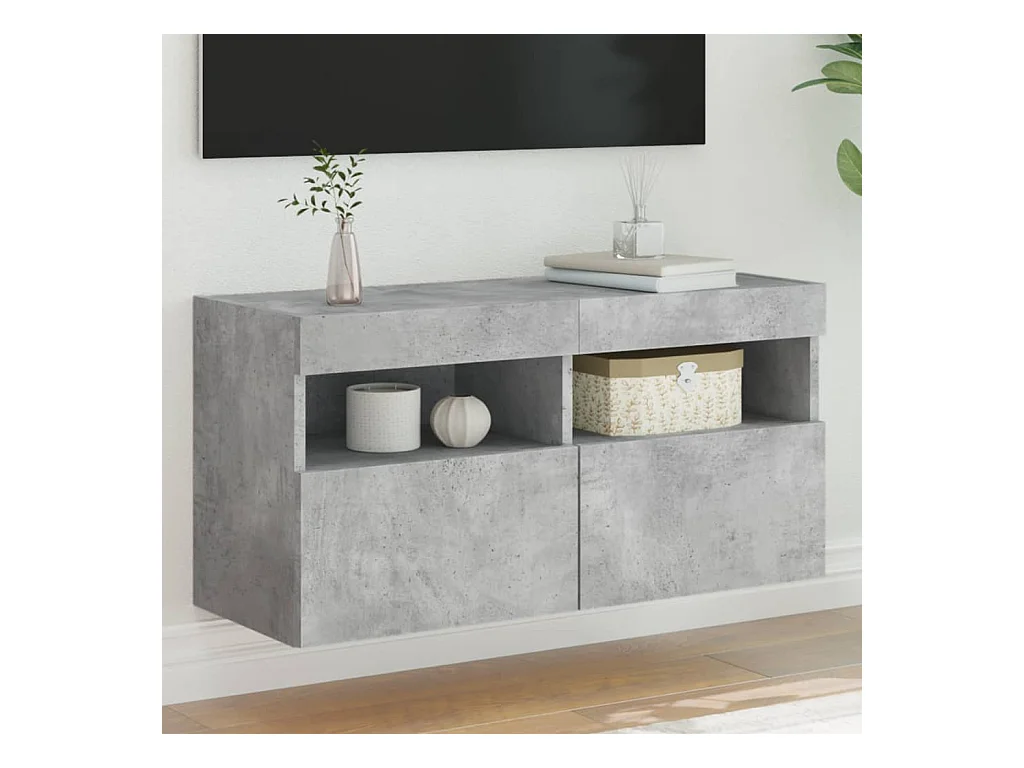 Mueble de TV | Mueble de salón de pared con luces LED gris hormigón 80x30x40 cm