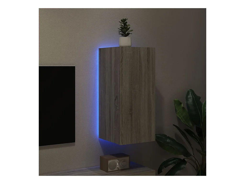 Mueble de TV | Mueble de salón de pared con luces LED gris Sonoma 60x35x41 cm