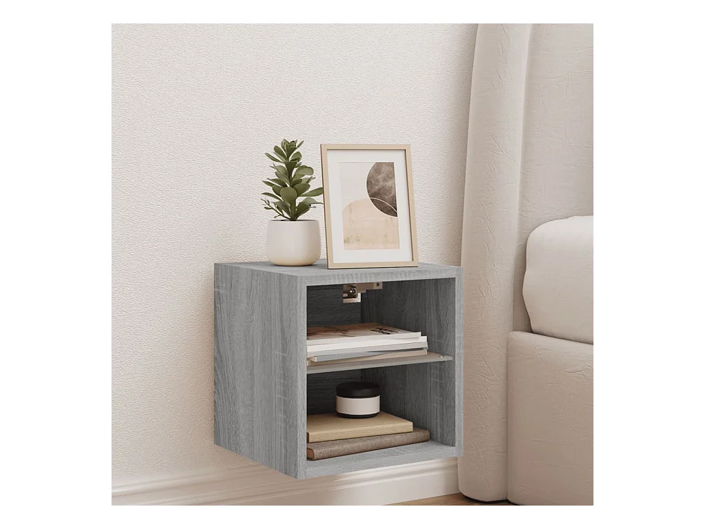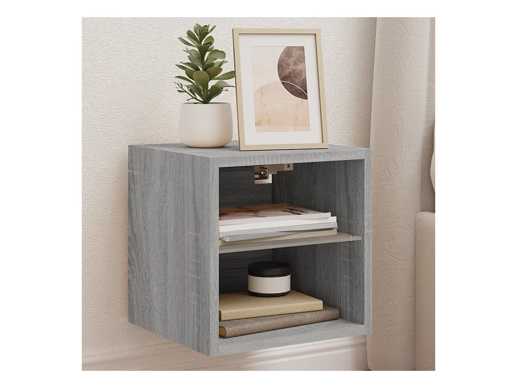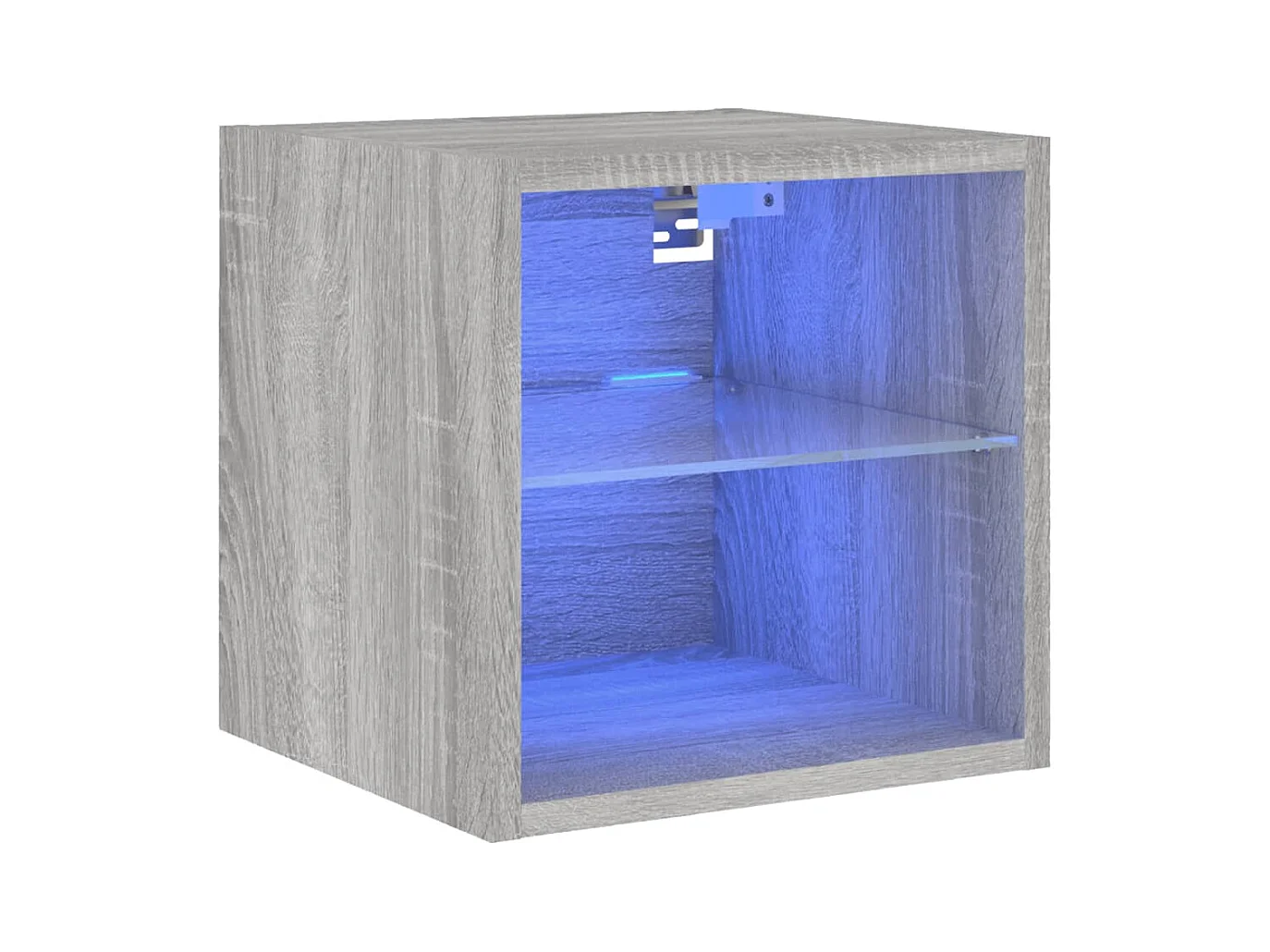 Mueble de TV | Mueble de salón de pared con luces LED gris Sonoma 30x28,5x30 cm