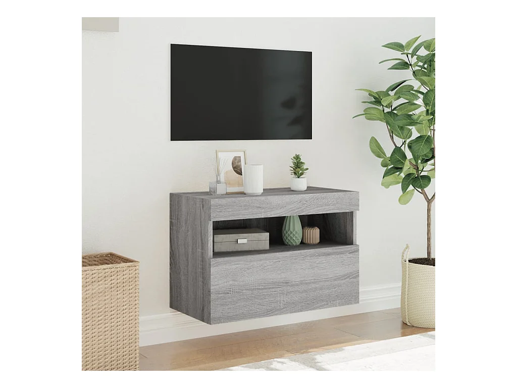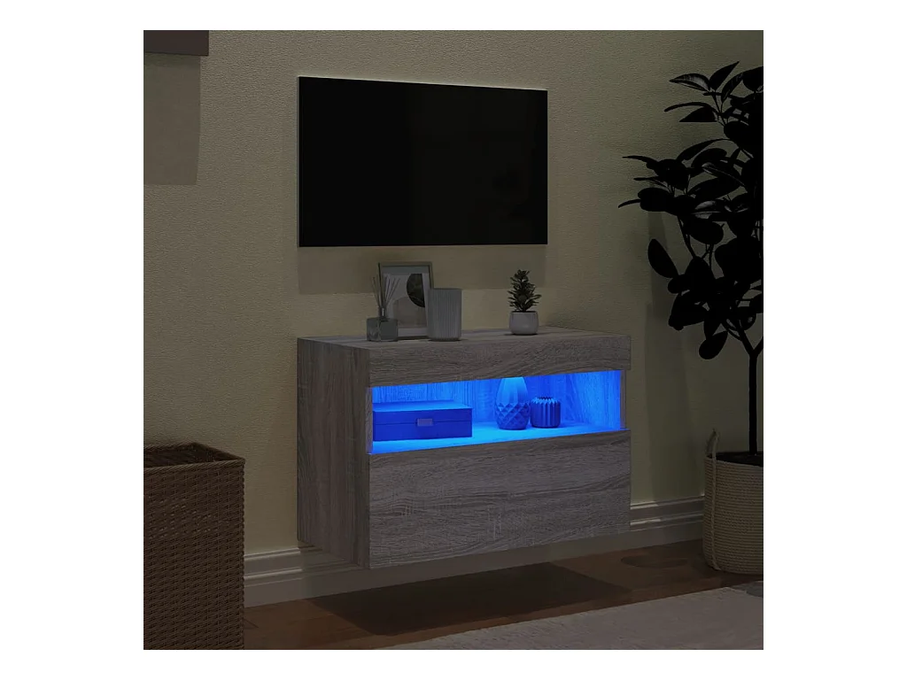 Mueble de TV | Mueble de salón de pared con luces LED gris Sonoma 60x30x40 cm