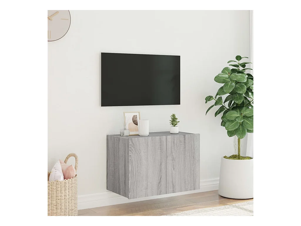 Mueble de TV | Mueble de salón de pared con luces LED gris Sonoma 60x35x41 cm