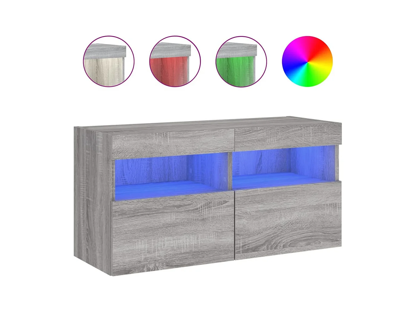 Mueble de TV | Mueble de salón de pared con luces LED gris Sonoma 80x30x40 cm