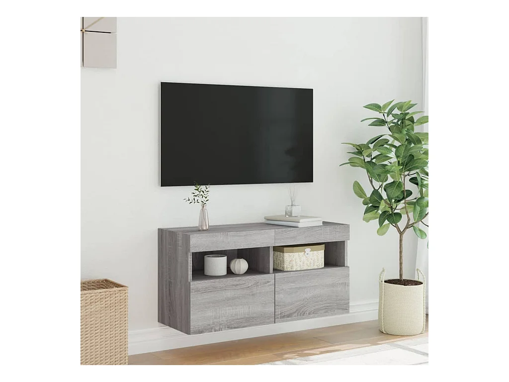 Mueble de TV | Mueble de salón de pared con luces LED gris Sonoma 60x30x40 cm