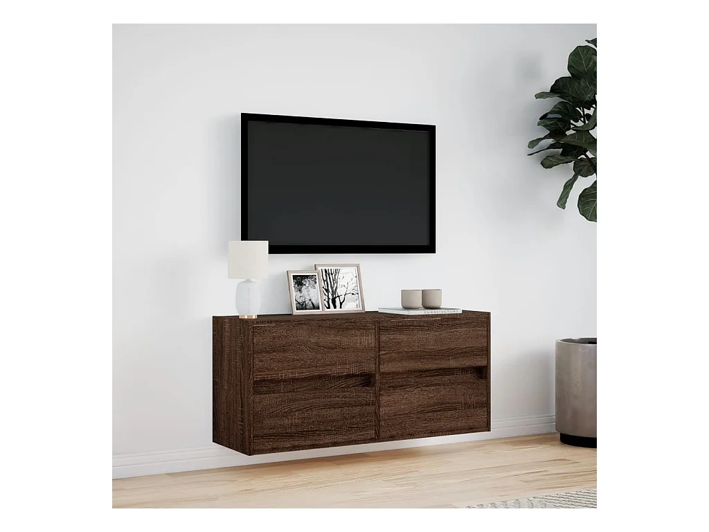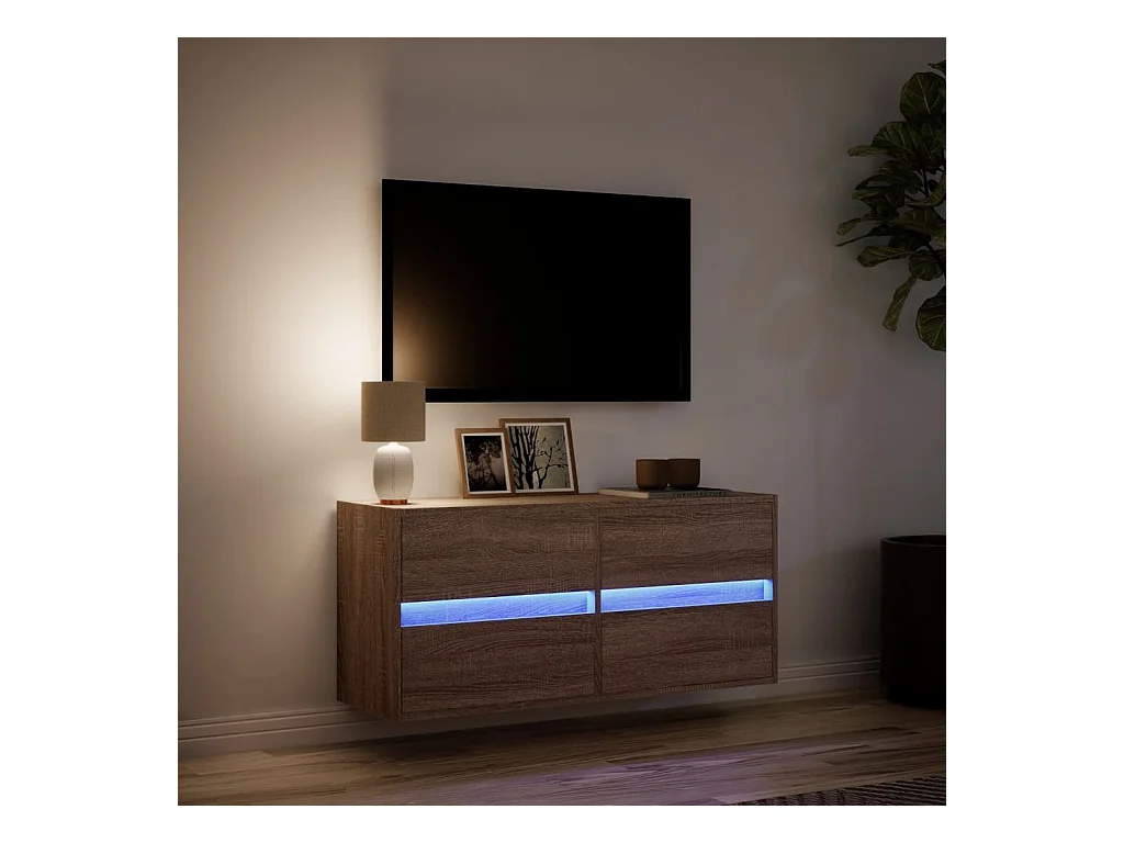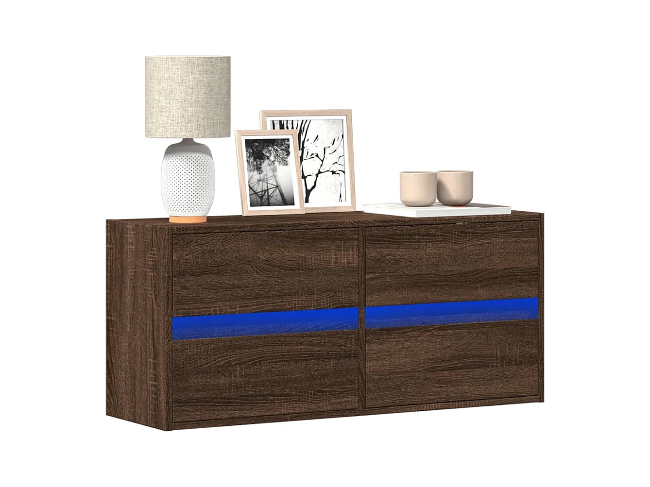 Mueble de TV | Mueble de salón de pared con luces LED marrón roble 100x31x45 cm