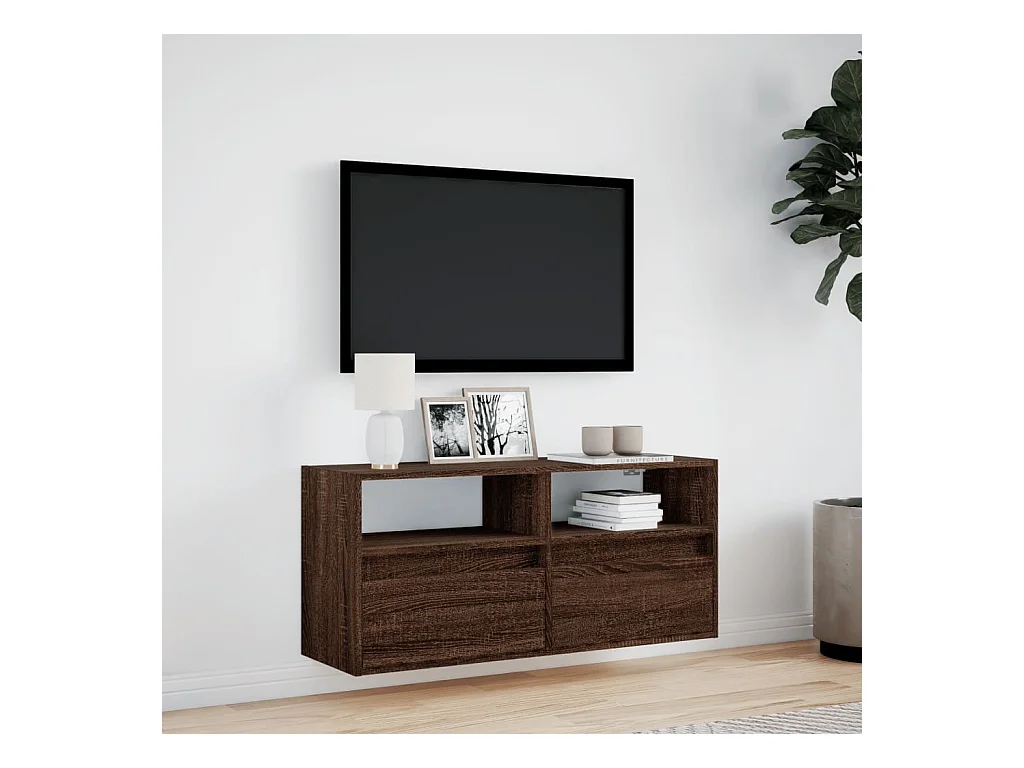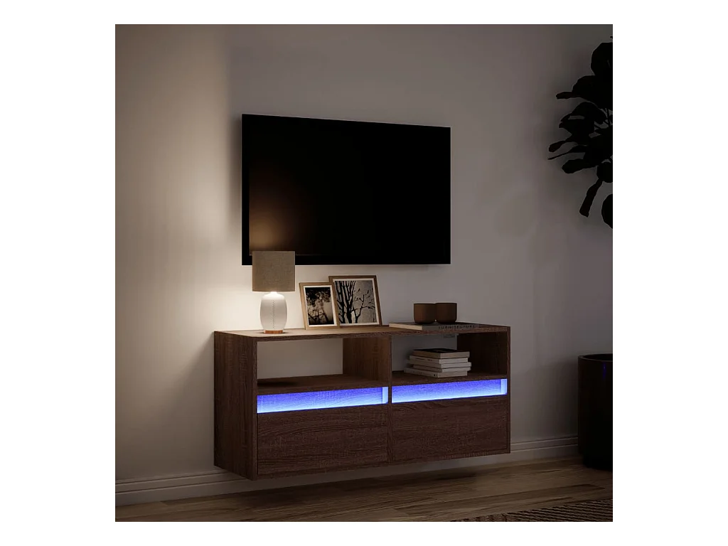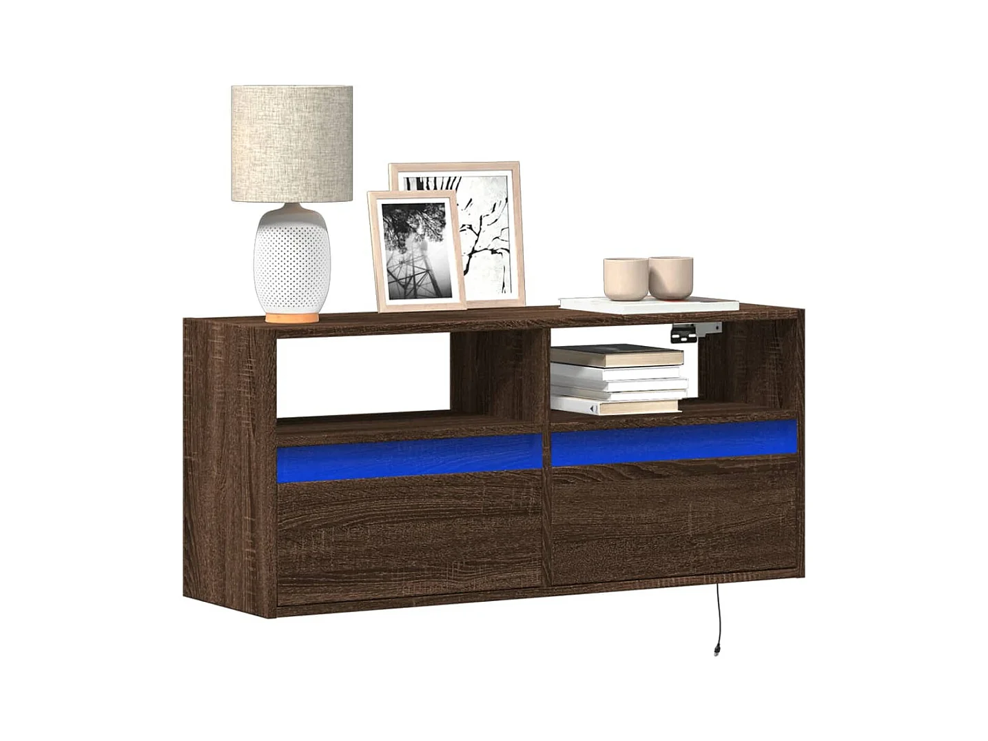 Mueble de TV | Mueble de salón de pared con luces LED marrón roble 100x31x45 cm