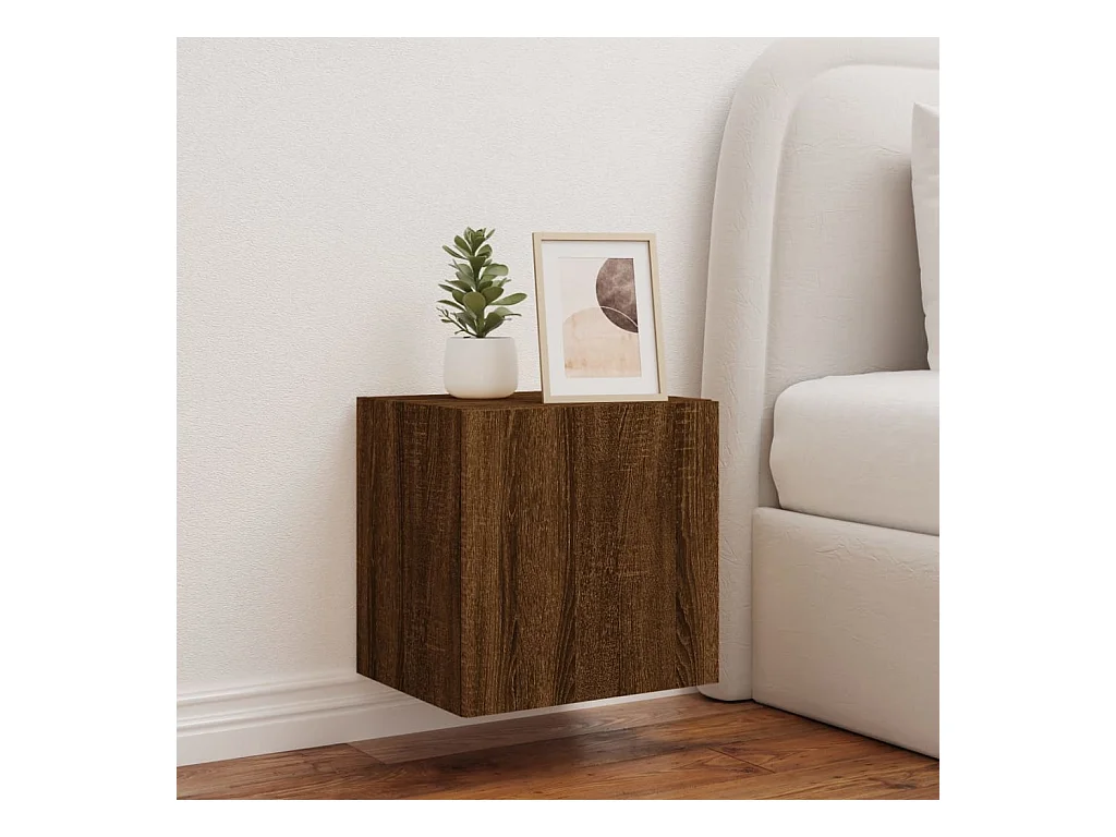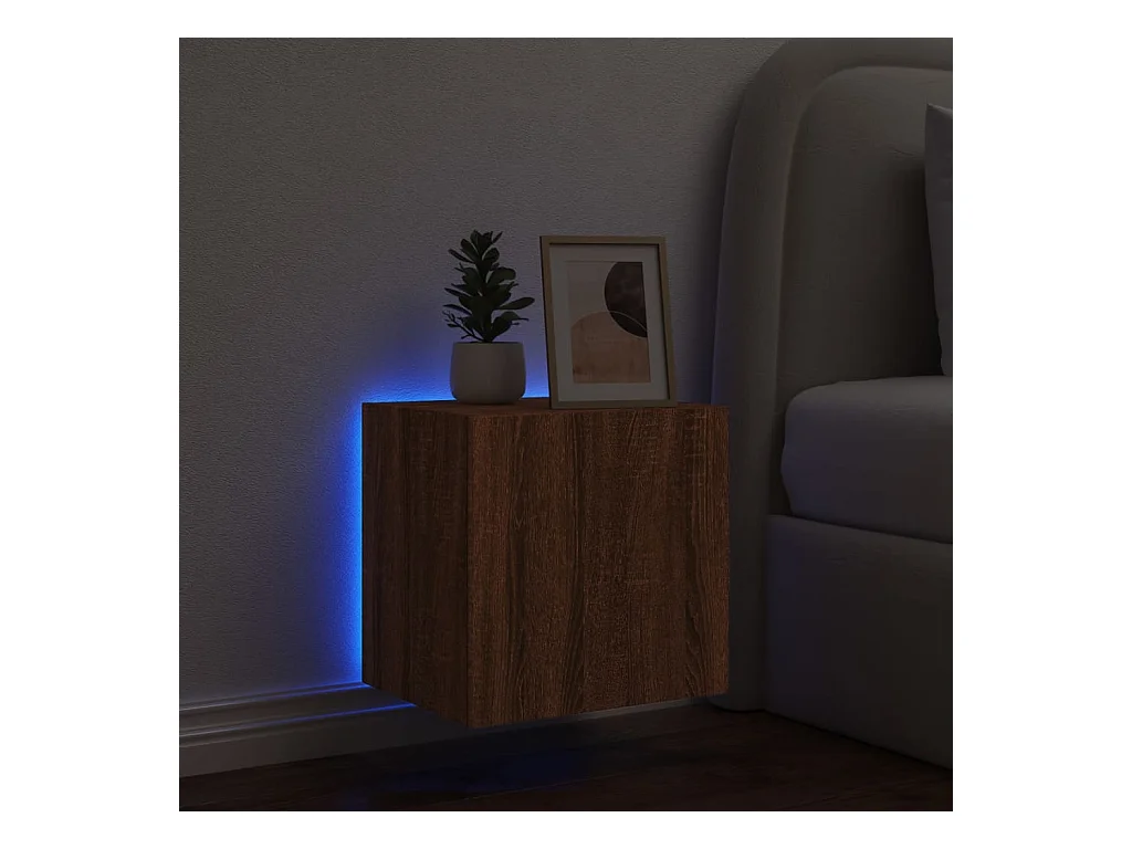 Mueble de TV | Mueble de salón de pared con luces LED marrón roble 40,5x35x40 cm