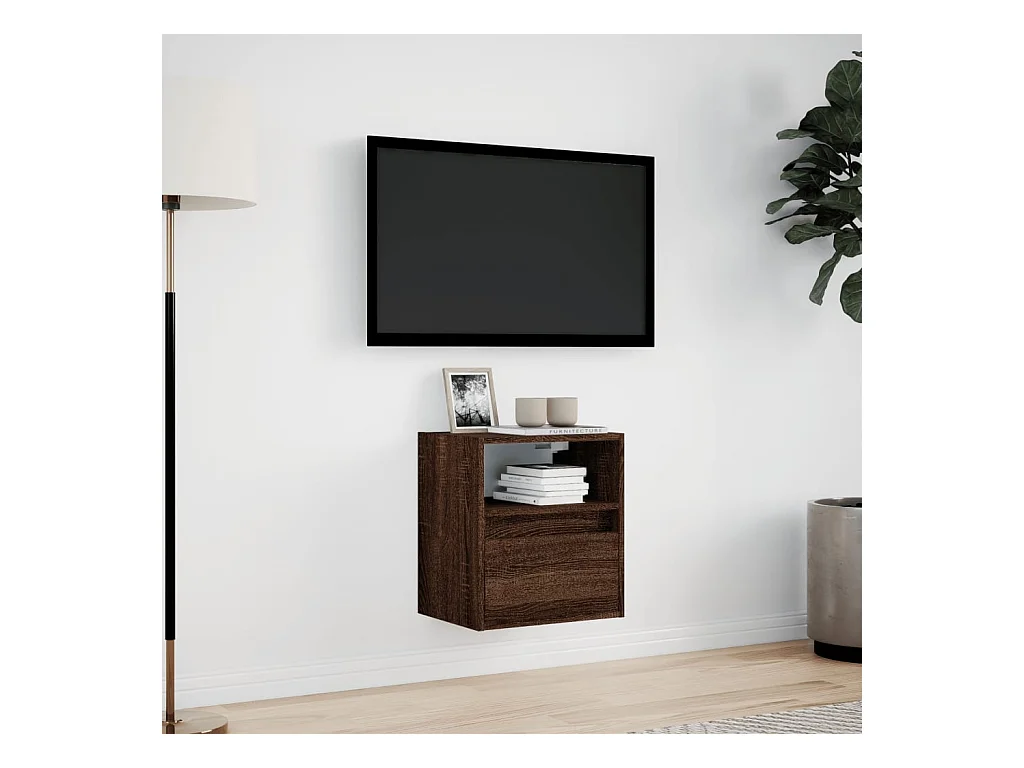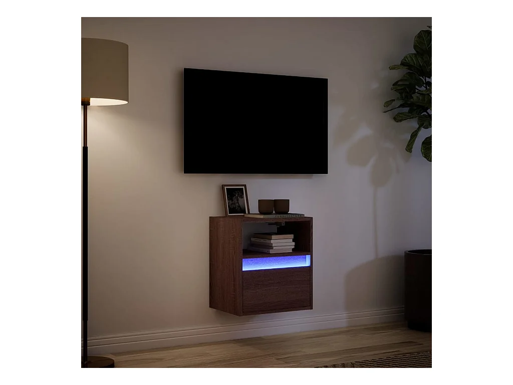 Mueble de TV | Mueble de salón de pared con luces LED marrón roble 41x31x45 cm