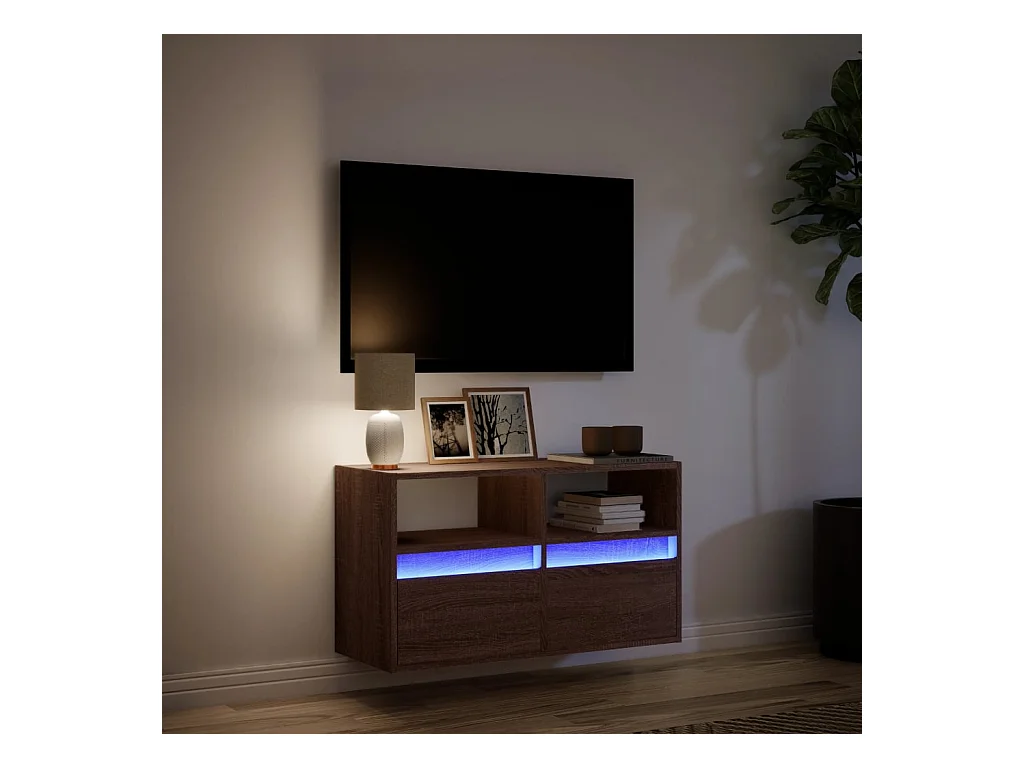 Mueble de TV | Mueble de salón de pared con luces LED marrón roble 80x31x45 cm
