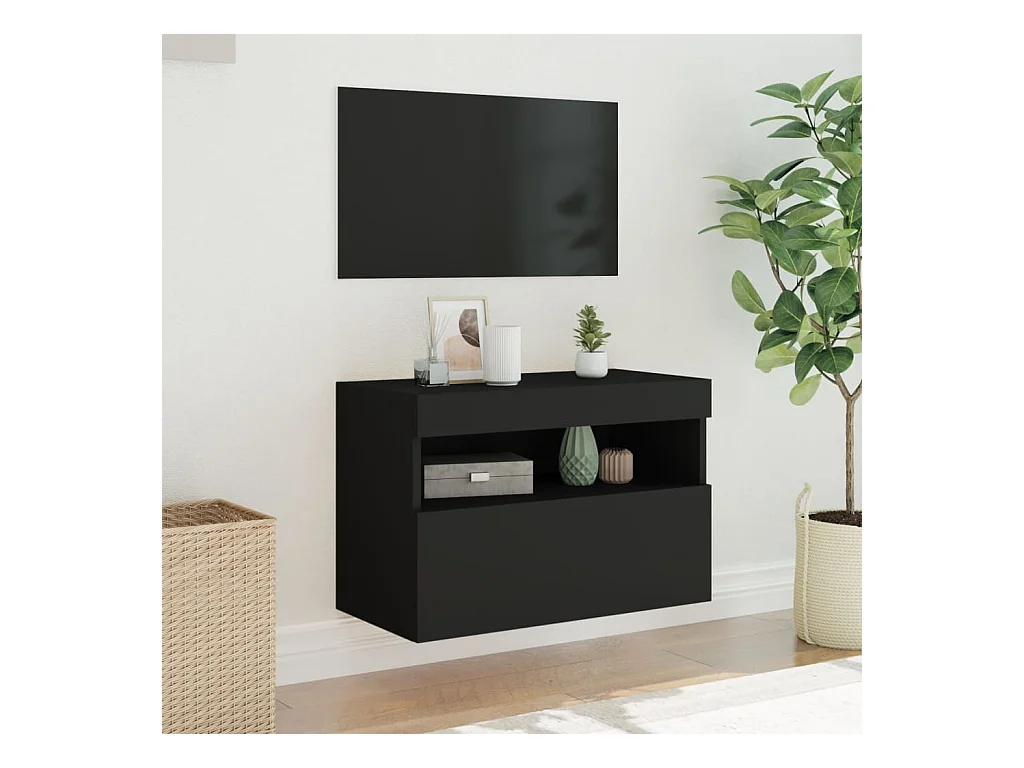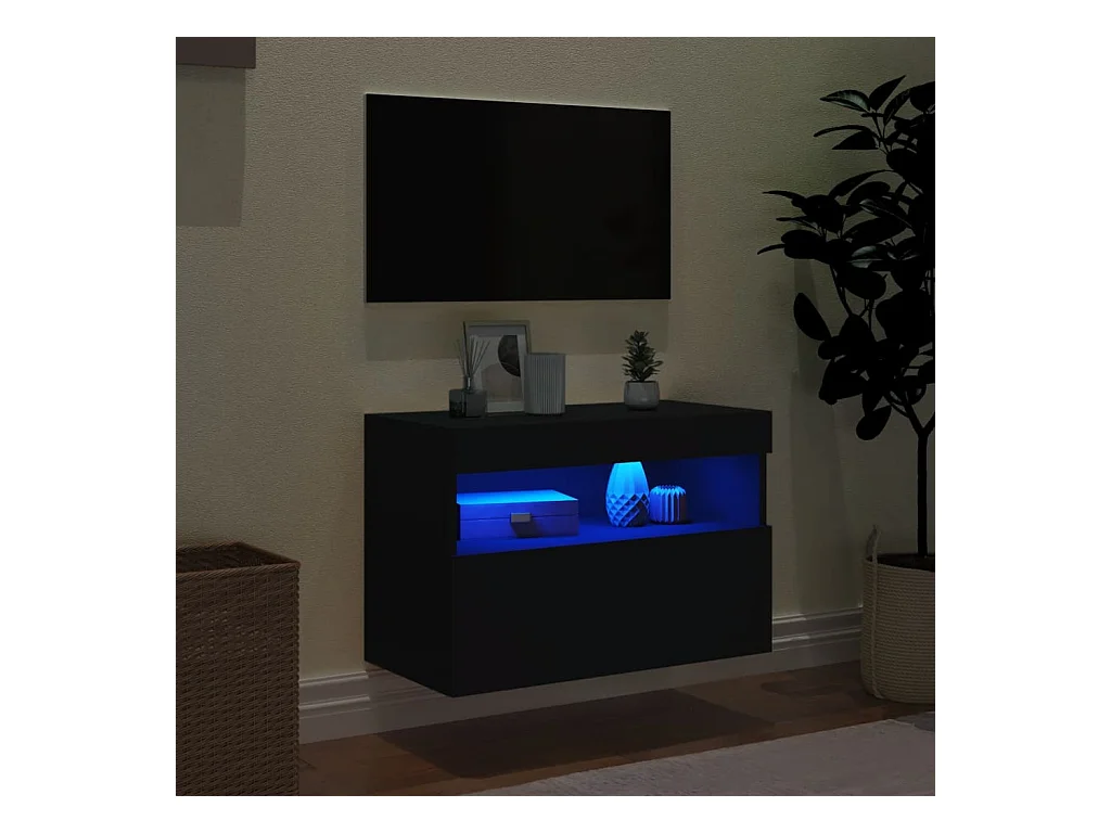 Mueble de TV | Mueble de salón de pared con luces LED negro 60x30x40 cm