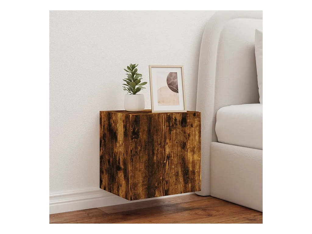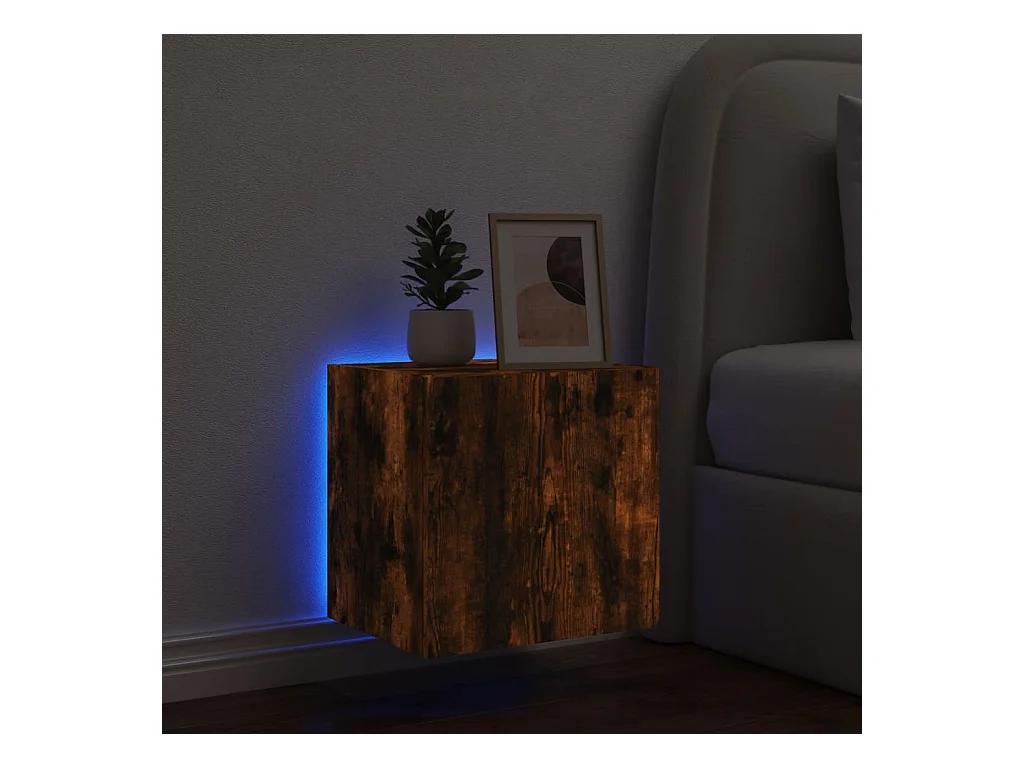 Mueble de TV | Mueble de salón de pared con luces LED roble ahumado 40,5x35x40 cm