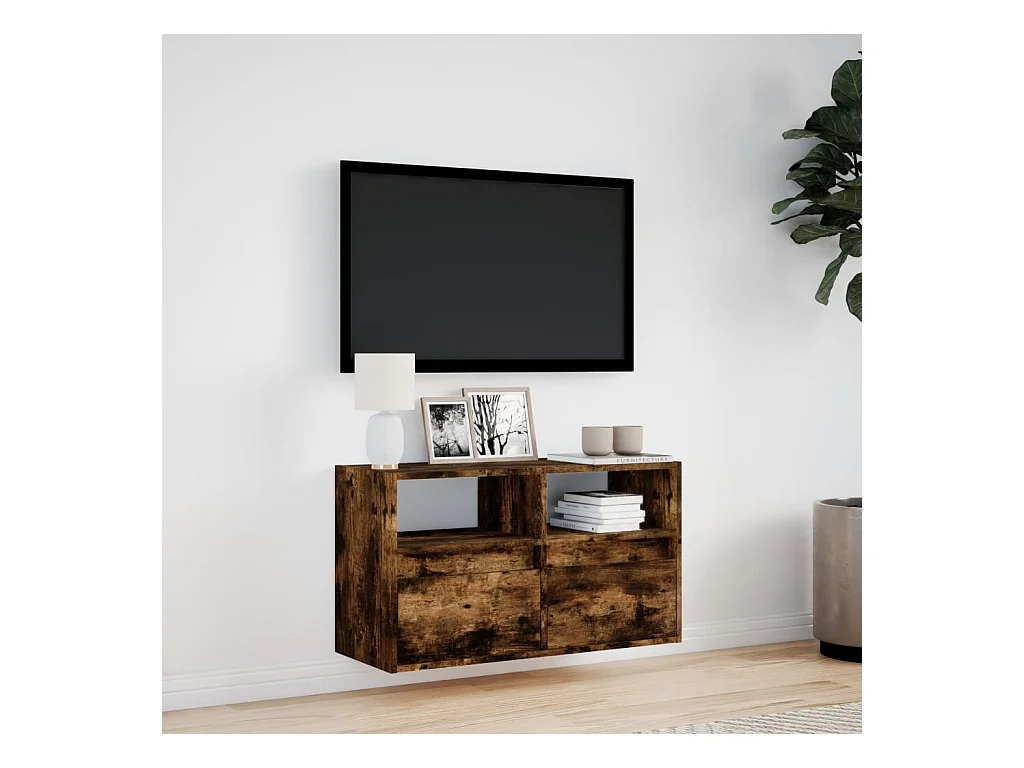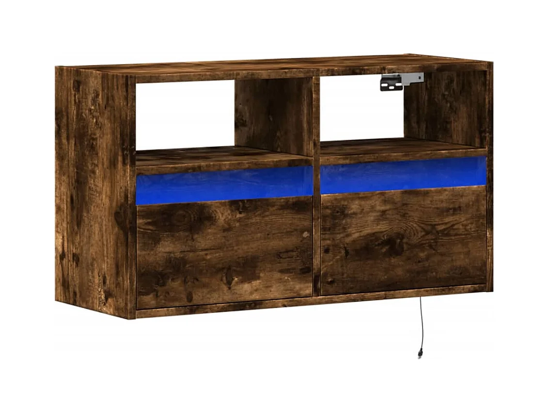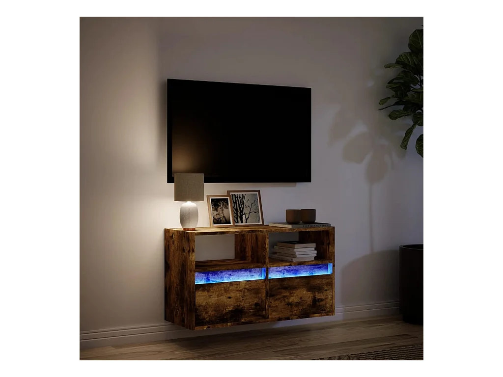 Mueble de TV | Mueble de salón de pared con luces LED roble ahumado 80x31x45 cm