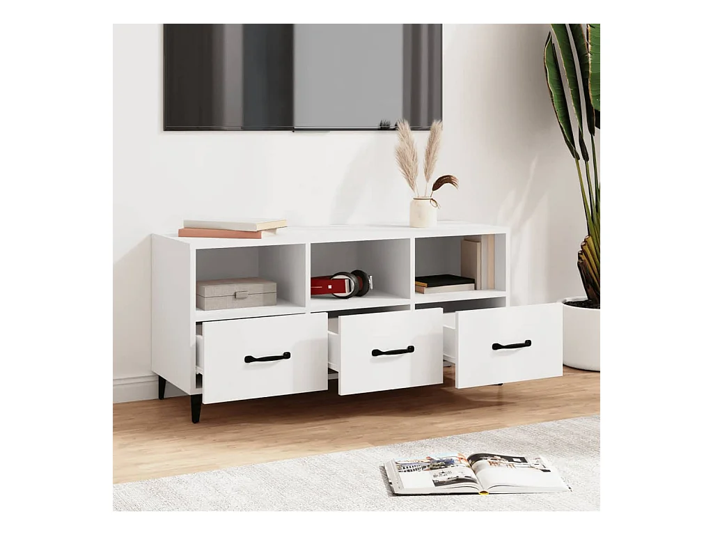 Mueble de TV | Mueble de salón madera contrachapada blanco brillo 102x36x50 cm