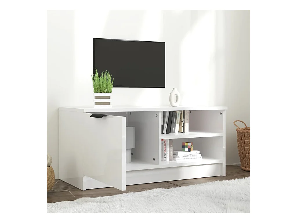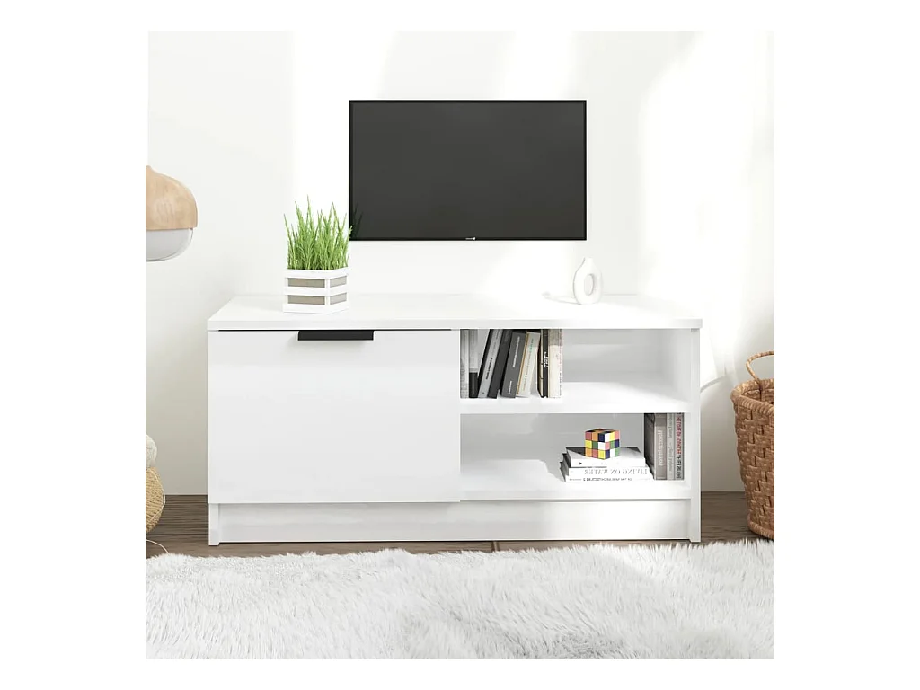 Mueble de TV | Mueble de salón madera contrachapada blanco brillante 80x35x36,5cm