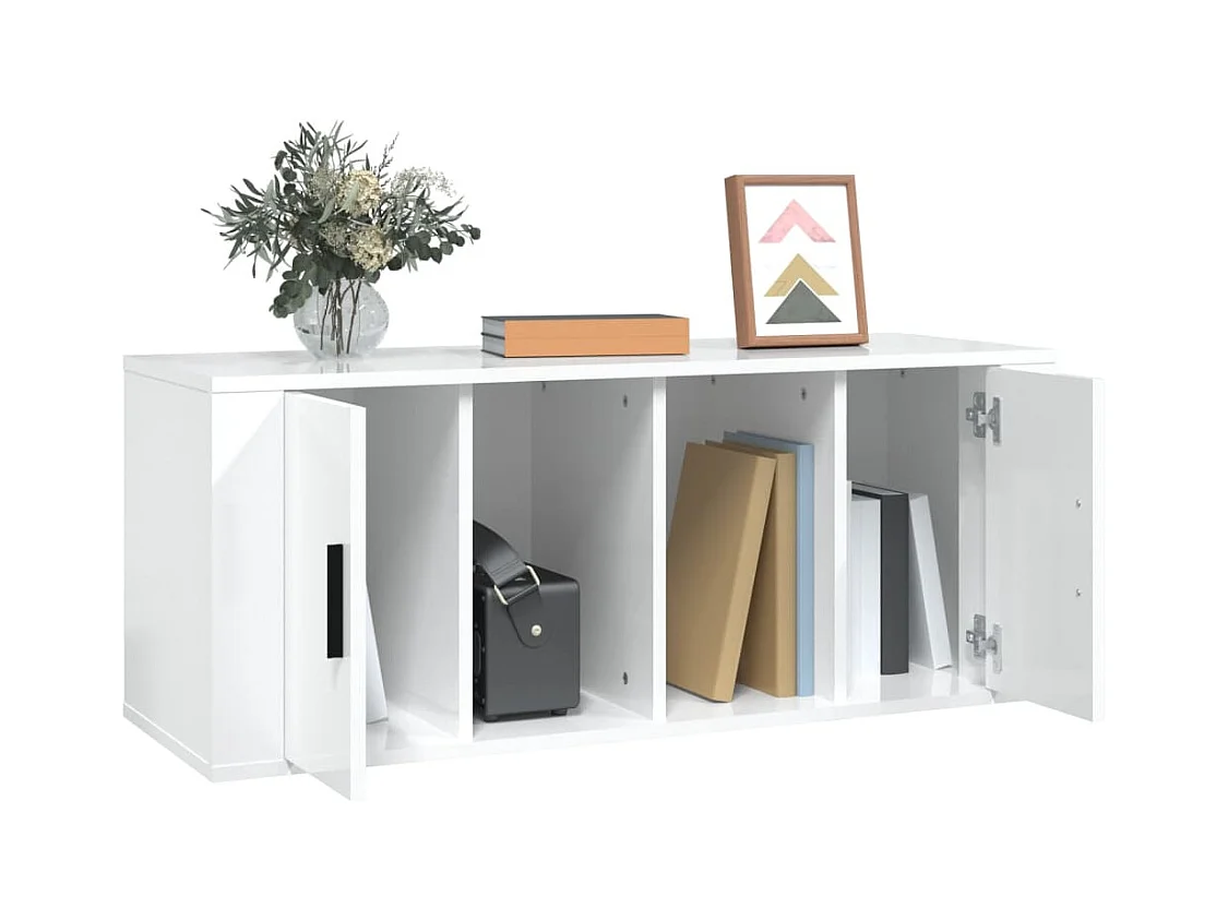 Mueble de TV | Mueble de salón madera contrachapada blanco brillo 100x35x40 cm