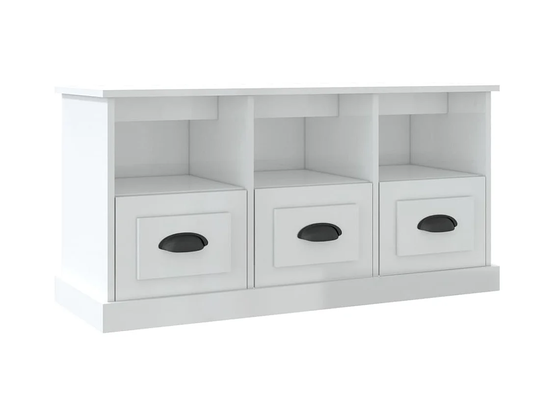 Mueble de TV | Mueble de salón madera contrachapada blanco brillo 100x35x50 cm
