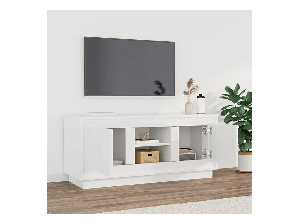 Mueble de TV | Mueble de salón madera contrachapada blanco brillo 102x35x45 cm
