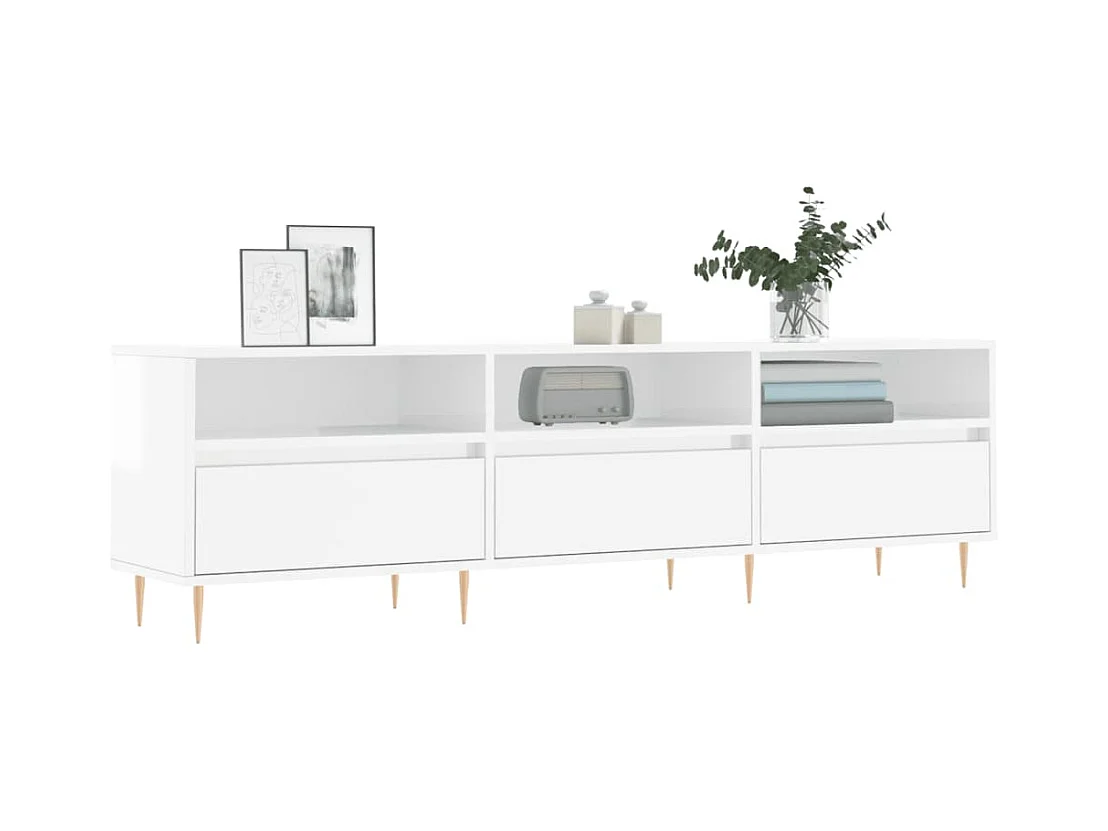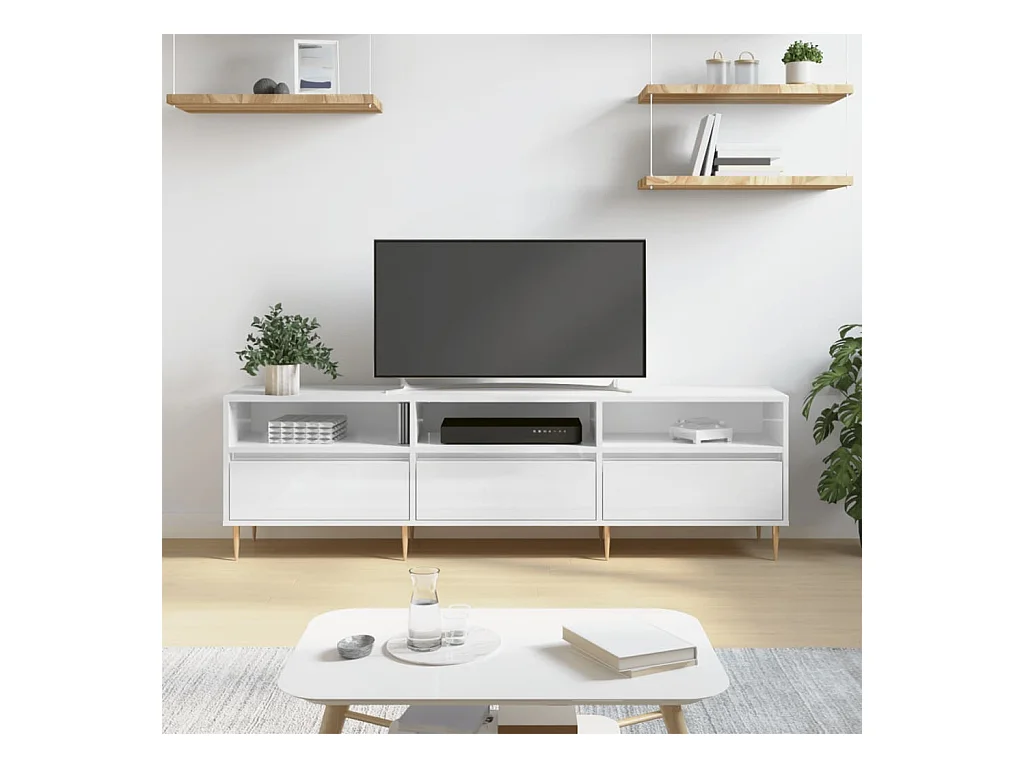 Mueble de TV | Mueble de salón madera contrachapada blanco brillo 150x30x44,5 cm