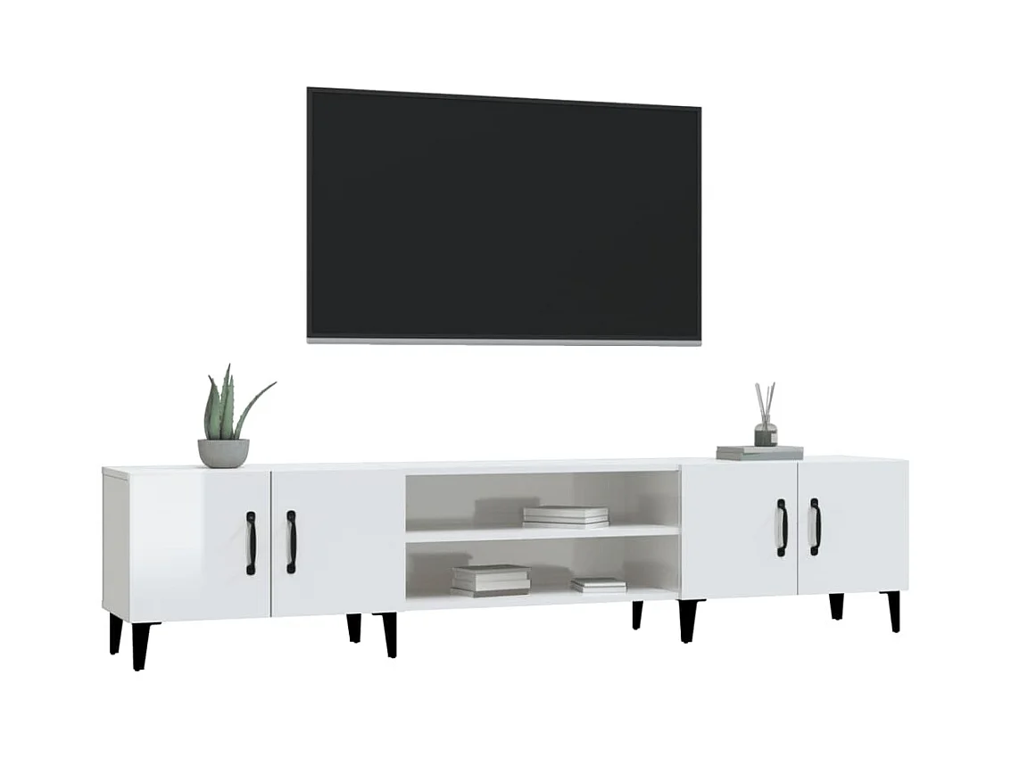 Mueble de TV | Mueble de salón madera contrachapada blanco brillo 180x31,5x40 cm
