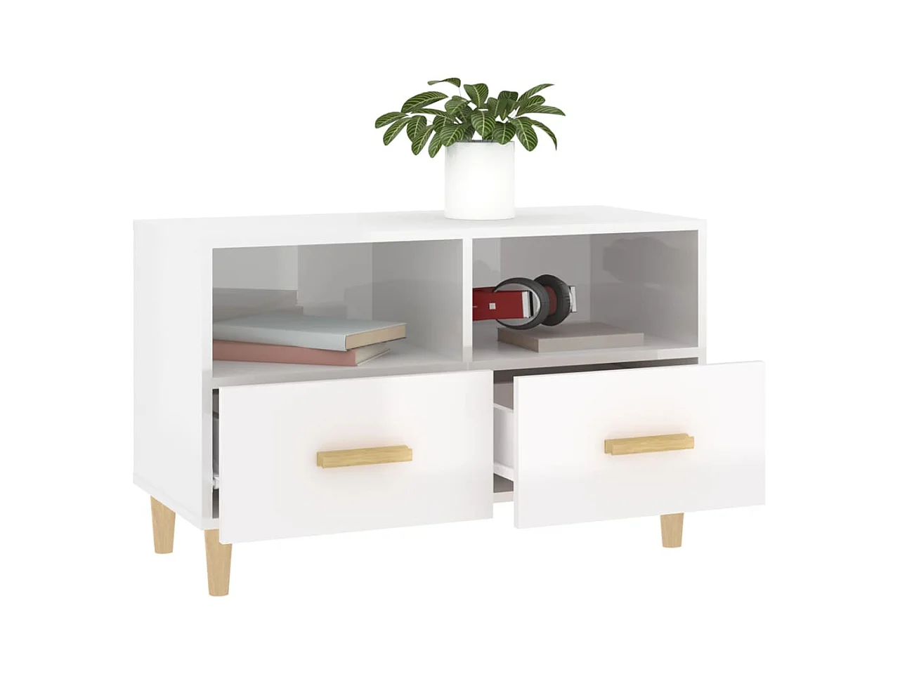 Mueble de TV | Mueble de salón madera contrachapada blanco brillo 80x36x50 cm