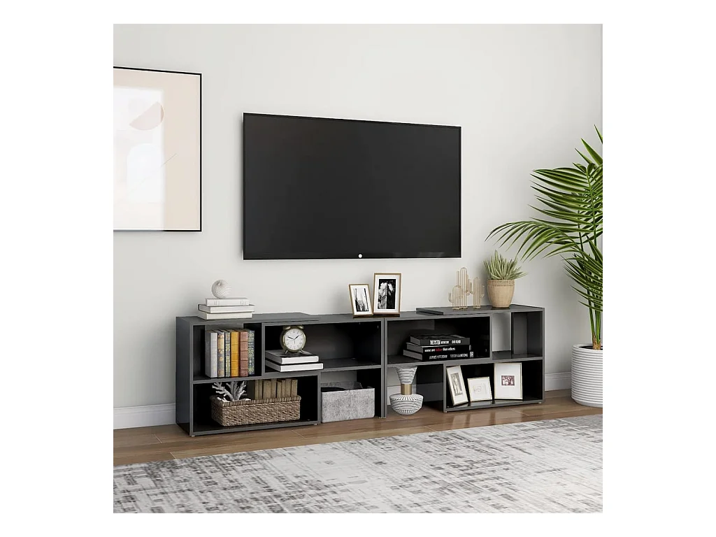 Mueble de TV | Mueble de salón madera contrachapada gris brillante 149x30x52 cm