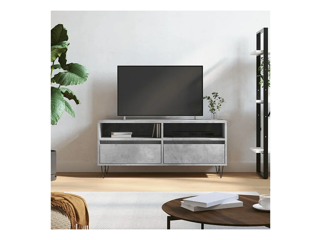 Mueble de TV | Mueble de salón madera contrachapada gris hormigón 100x34,5x44,5cm