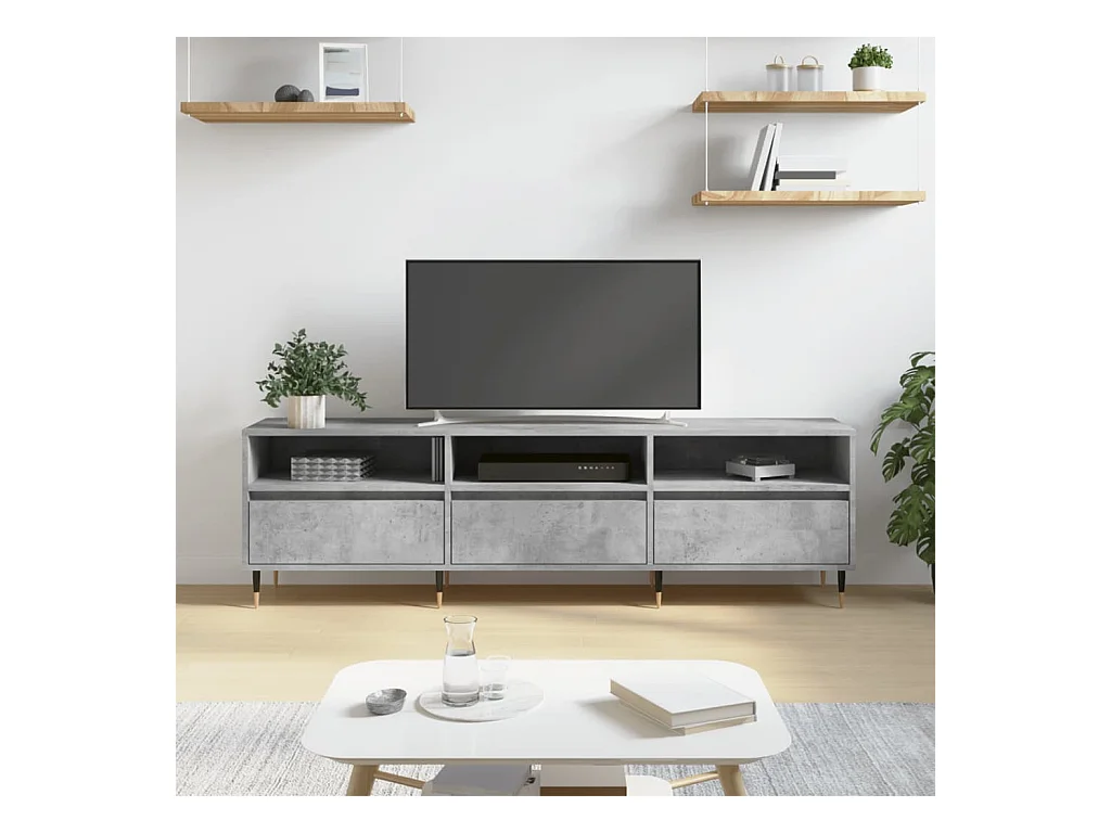 Mueble de TV | Mueble de salón madera contrachapada gris hormigón 150x30x44,5 cm