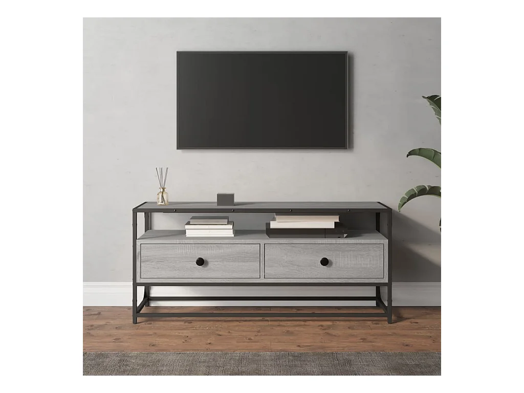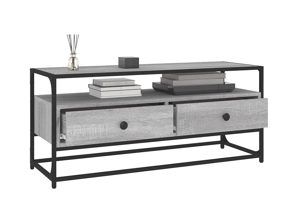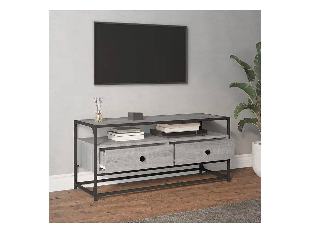 Mueble TV | Gabinete de TV | Mueble de salón metal y madera ingeniería gris Sonoma 100x35x41 cm