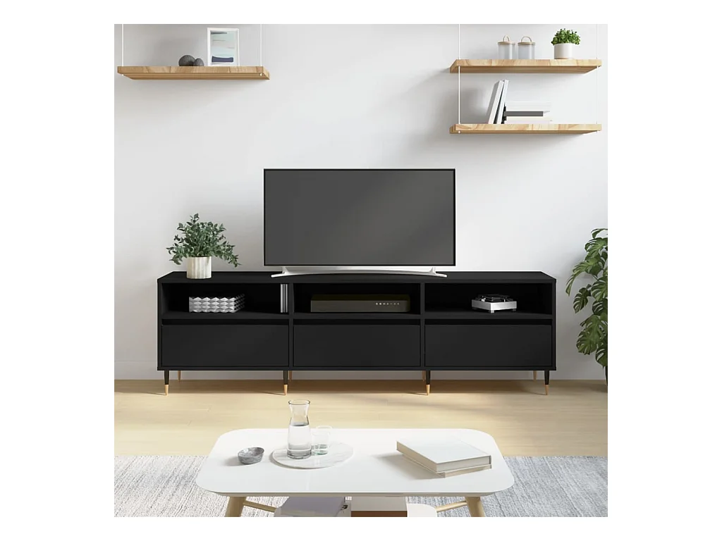 Mueble de TV | Mueble de salón madera contrachapada negro 150x30x44,5 cm