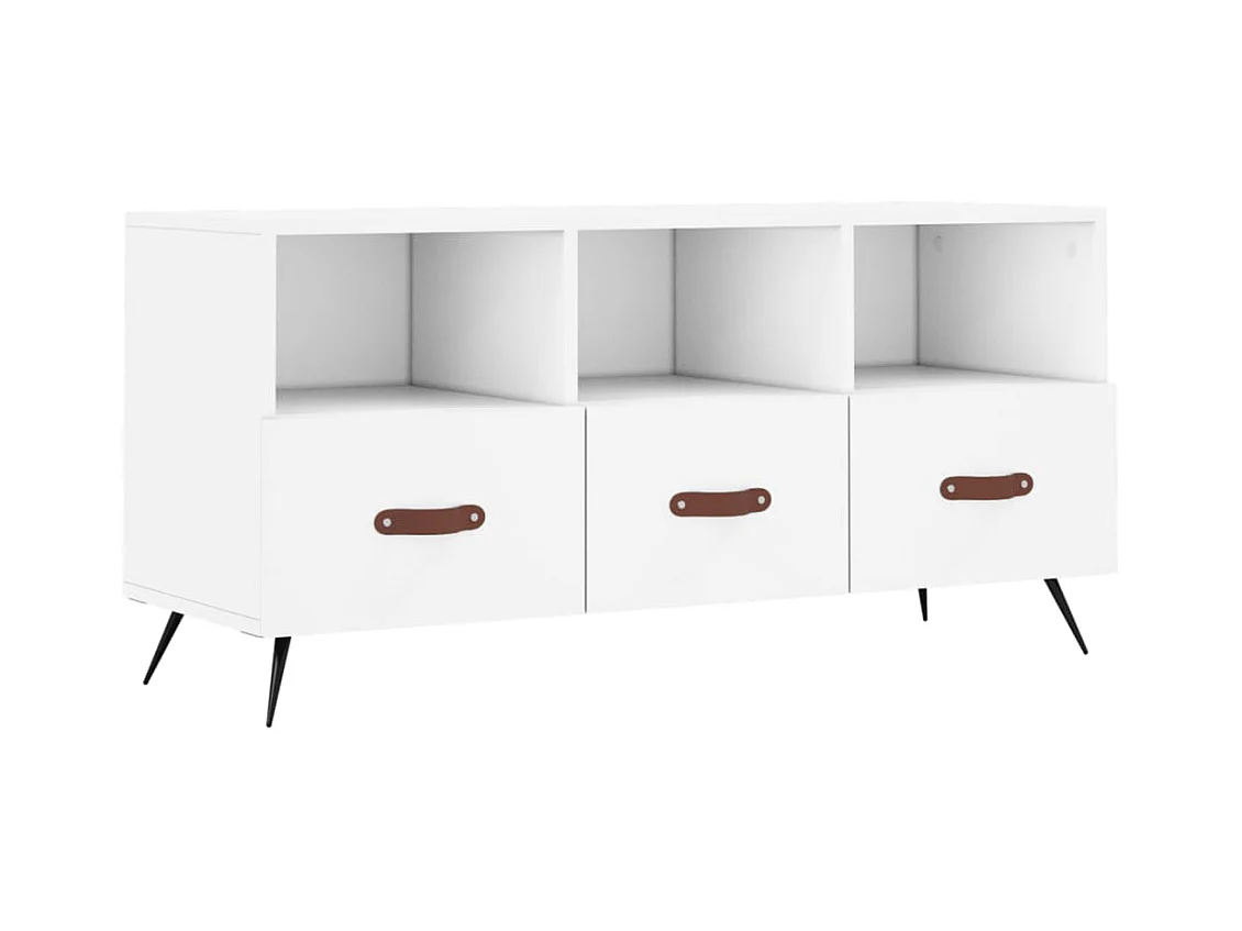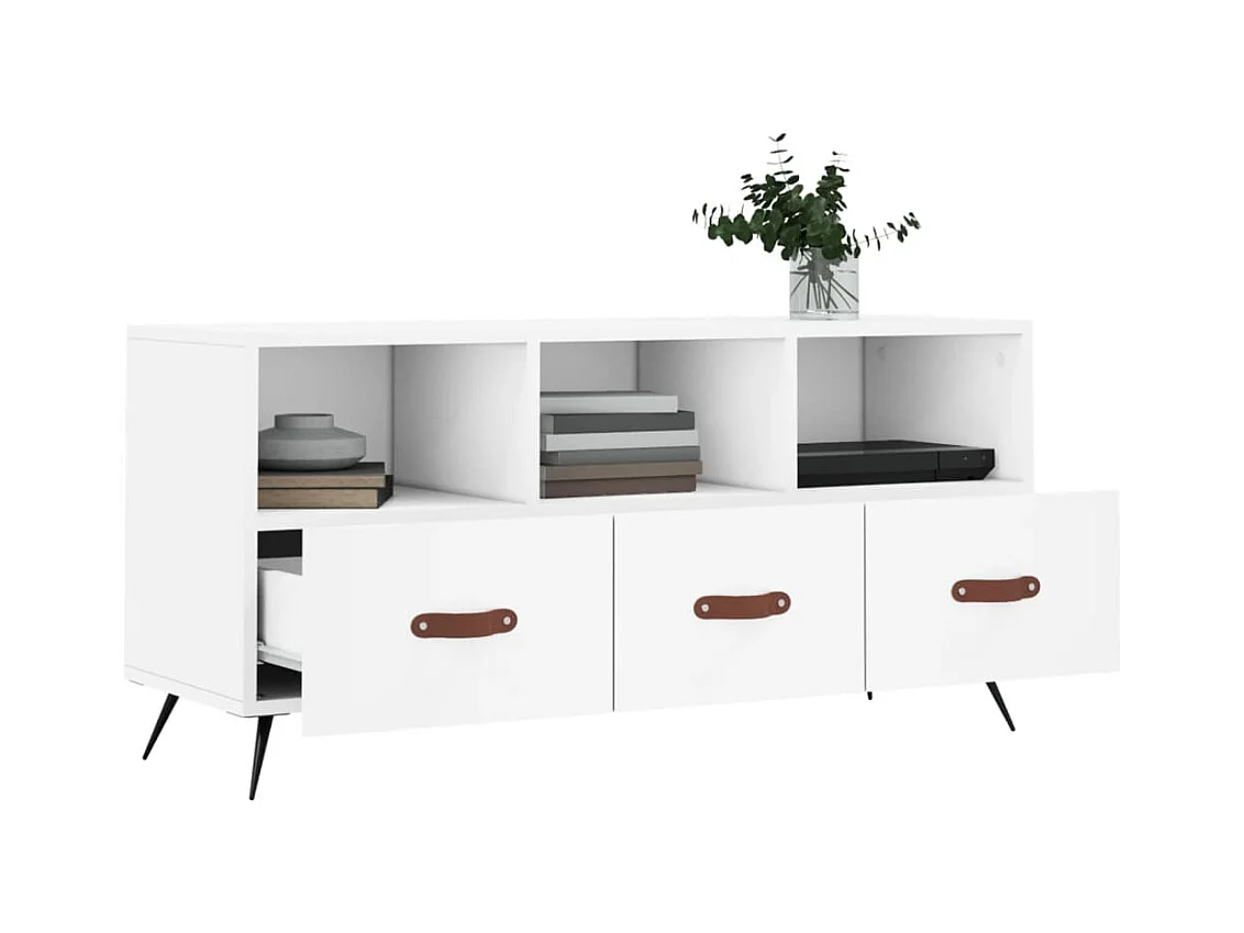 Mueble de TV | Mueble de salón madera contrachapada blanco brillo 102x36x50 cm