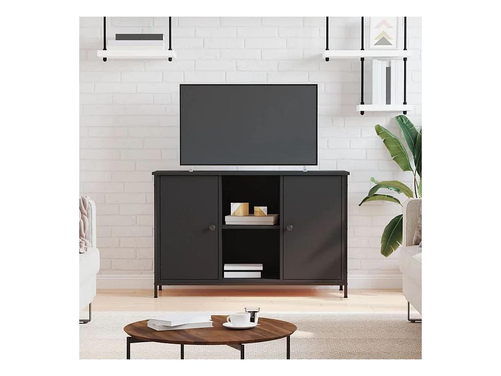 Mueble de TV | Mueble de salón madera de ingeniería y metal negro 100x35x41 cm