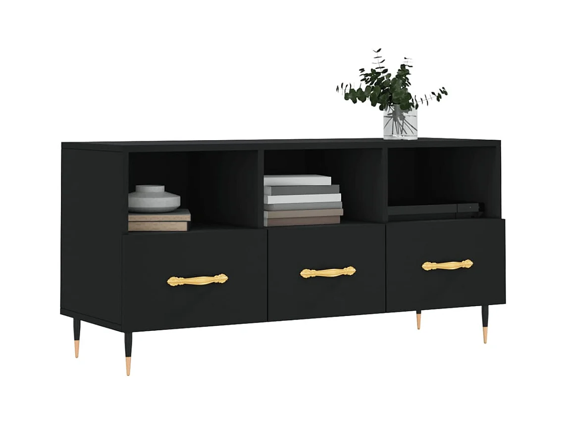 Mueble de TV | Mueble de salón madera contrachapada negro 102x36x50 cm