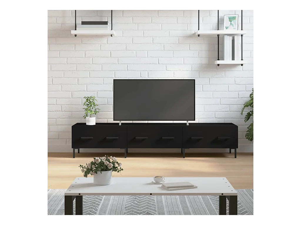 Mueble de TV negro 150x30x50 cm madera de ingeniería