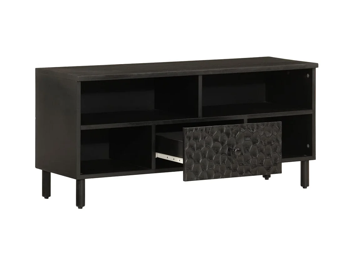 Mueble de TV | Mueble de salón madera maciza de mango negro 100x33x46 cm