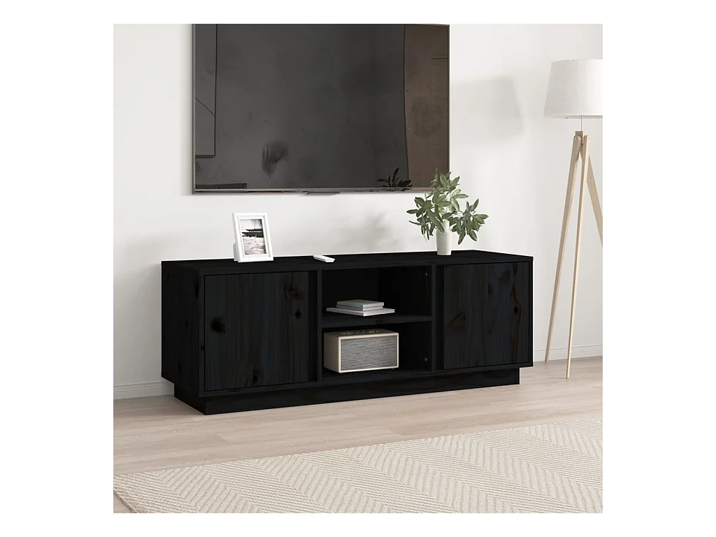 Mueble para TV | Gabinete de TV | Mueble de salón madera maciza de pino negro 110x35x48 cm