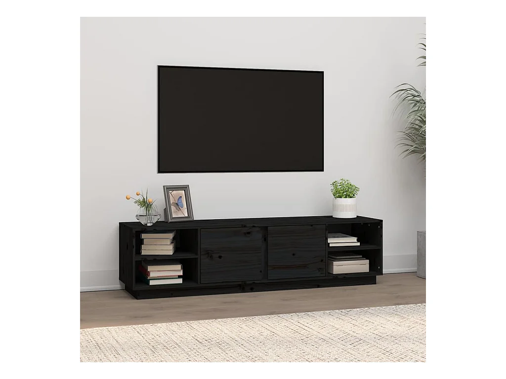 Mueble de TV | Mueble de salón madera maciza de pino negro 156x40x40 cm
